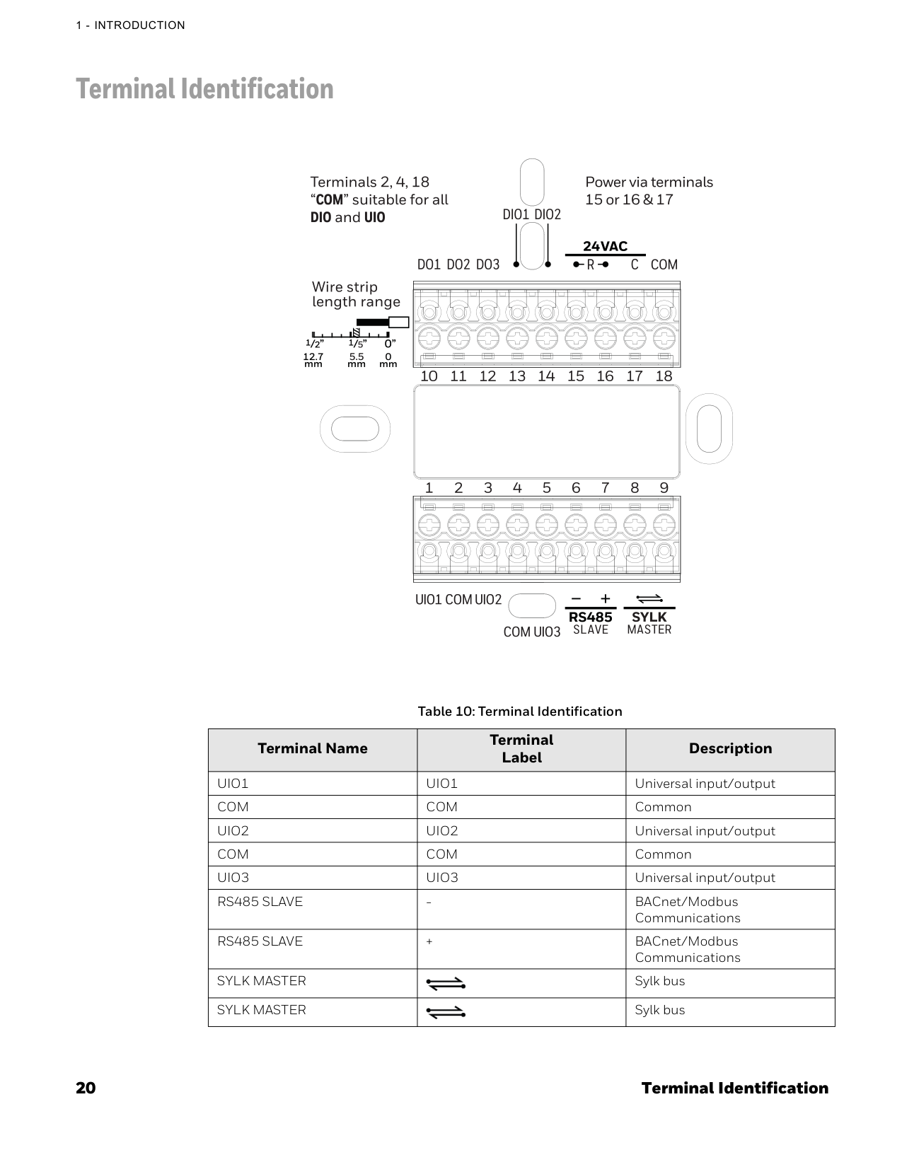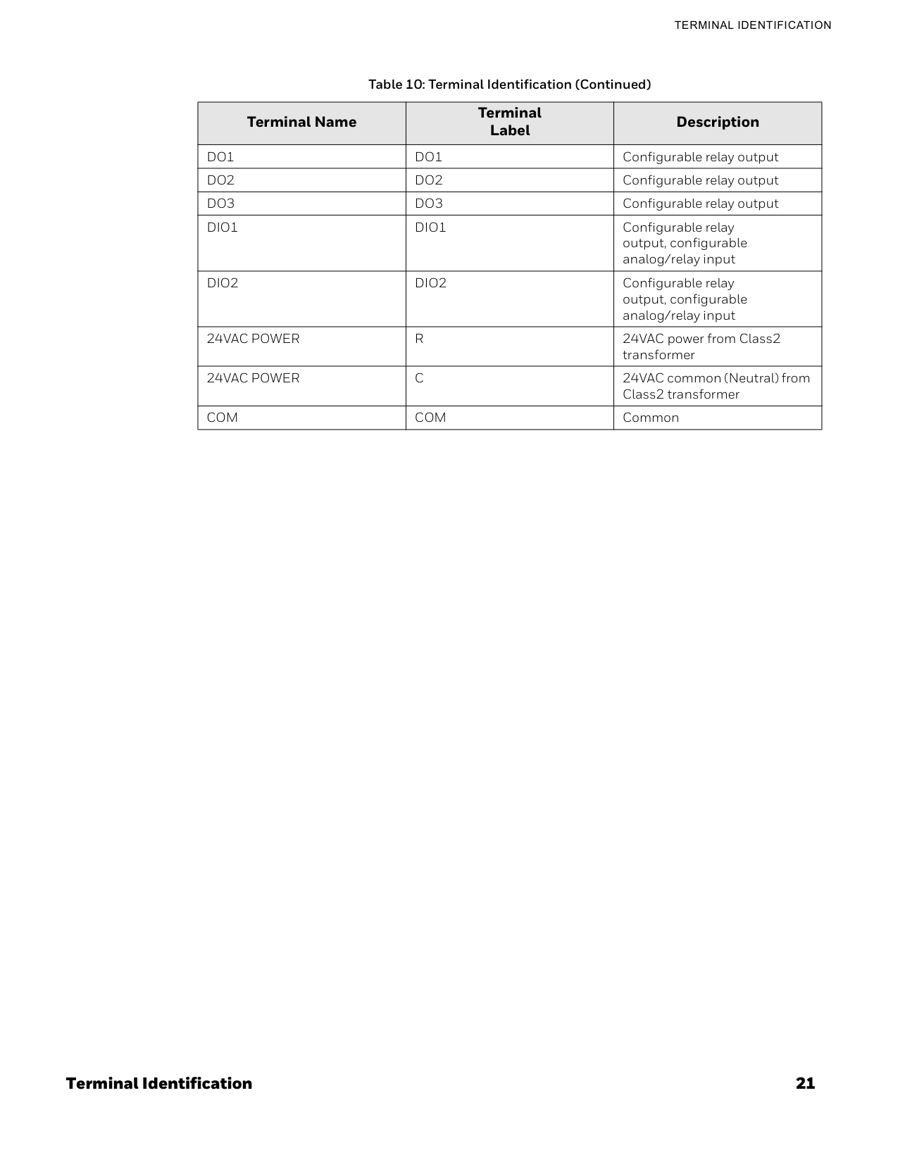 Terminal Identification Table 10: Terminal Identification Terminal Name Terminal Label DescriptionUio1