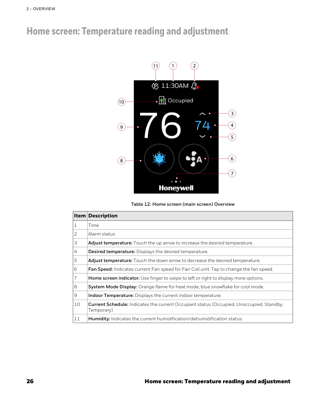The range above or below occupied setpoint by which the temperature may be altered by user from programmed scheduled setpoint in occupied state or when initiating temporary override of schedule. This includes scheduled occupancy or override of the scheduled occupancy (bypass override). During unoccupied and standby periods, the effective setpoint offset is set to 0 Δ°F. If an occupant wants to change the temporary setpoint, the occupant must first override the schedule to occupied and then the thermostat will allow the occupant to change the temporary setpointHeat pump 81