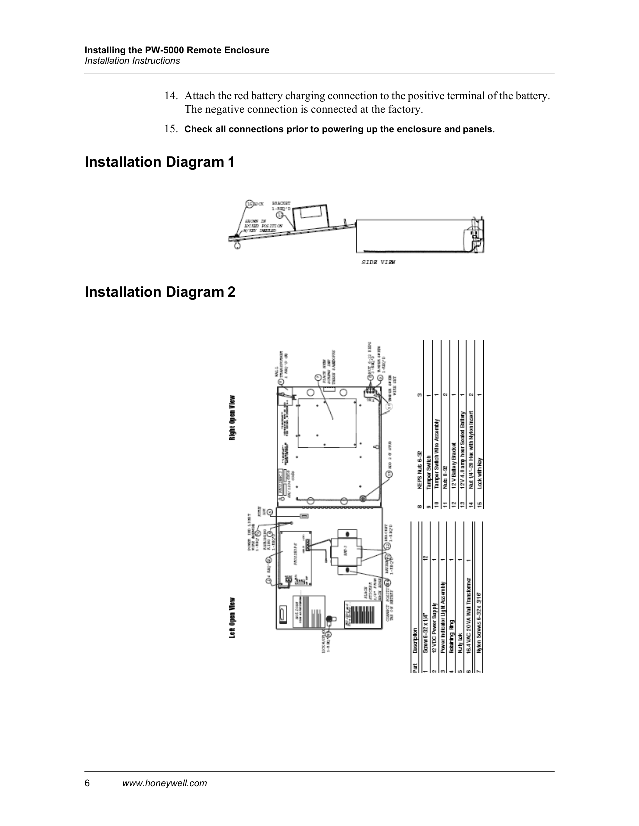 Installing the PW-5000 Remote Enclosure Description 2 www.honeywell.com