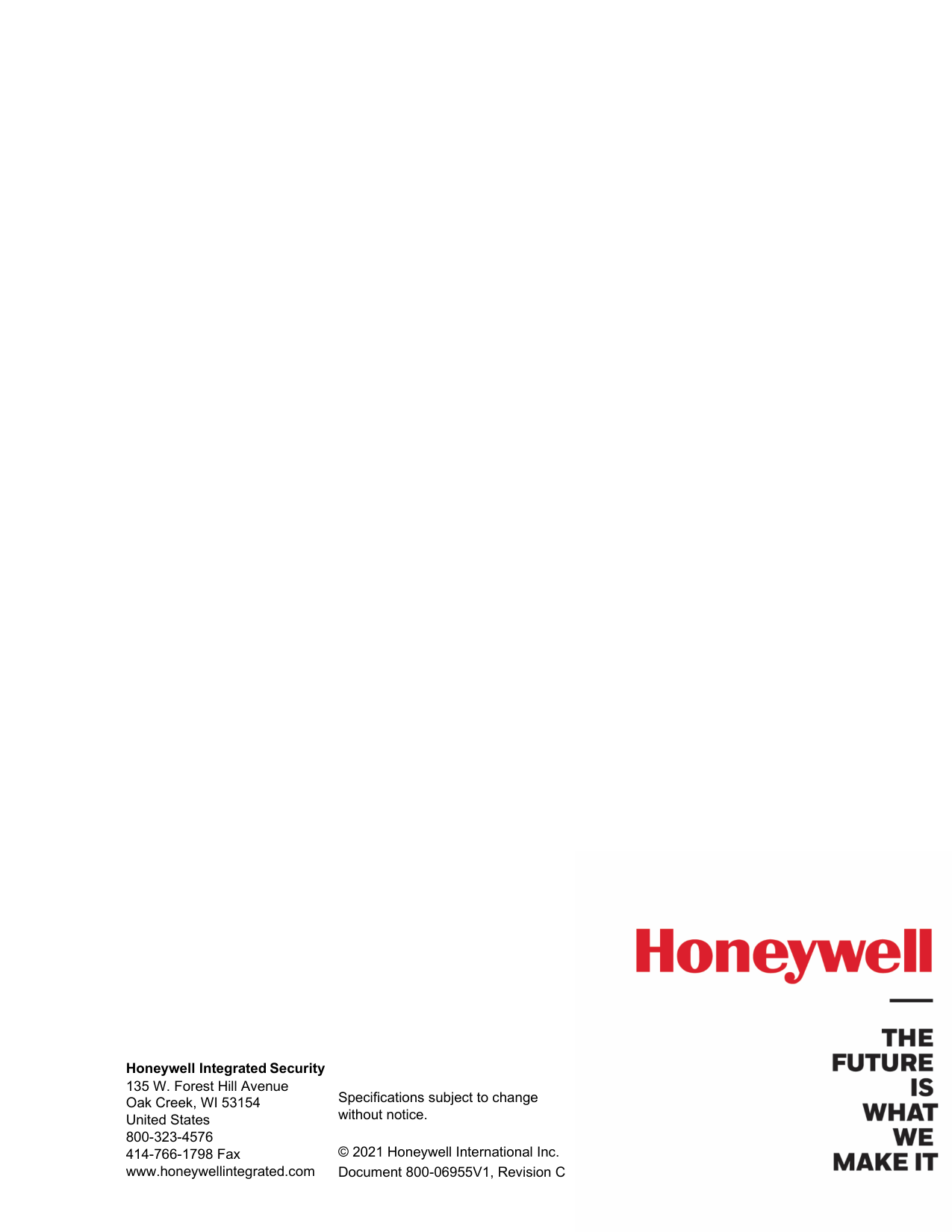 May 2021 © 2021 Honeywell. All rights reserved 800-06955V1 Revision C