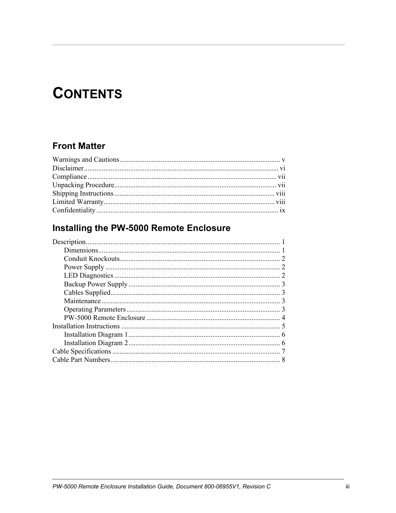 PW-5000 Remote Enclosure Installation Guide, Document 800-06955V1, Revision C iii