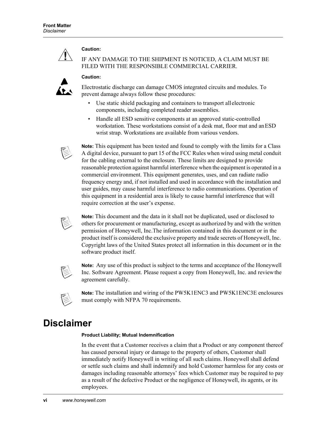 Front Matter vi www.honeywell.com