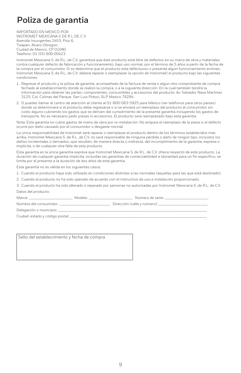 Avenida Insurgentes 2453, Piso 6, Tizapan, Alvaro Obregon, Ciudad de Mexico, CP 01090 Telefono: 01 (55) 800 00423 Instromet Mexicana S. de R.L. de C.V. garantiza que éste producto está libre de defectos en su mano de obra y materiales contra cualquier defecto de fabricación y funcionamiento, bajo uso normal, por el término de 5 años a partir de la fecha de la compra por el consumidor. Si se determina que el producto esta defectuoso o presenta algún funcionamiento erróneo, Instromet Mexicana S. de R.L. de C.V. deberá reparar o reemplazar (a opción de Instromet) el producto bajo las siguientes condiciones:www.resideo.com © 2022 Resideo Technologies, Inc. All rights reserved. The Honeywell Home trademark is used under license from Honeywell International, Inc. This product is manu- factured by Resideo Technologies, Inc. and its affiliates. Tous droits réservés. La marque de commerce Honeywell Home est utilisée avec l’autorisation d’Honeywell International, Inc. Ce produit est fabriqué par Resideo Technologies, Inc. et ses sociétés affiliées. Todos los derechos reservados. La marca comercial Honeywell Home se utiliza bajo licencia de Honeywell International, Inc. Este producto es fabricado por Resideo Technologies, Inc. y sus afiliados.