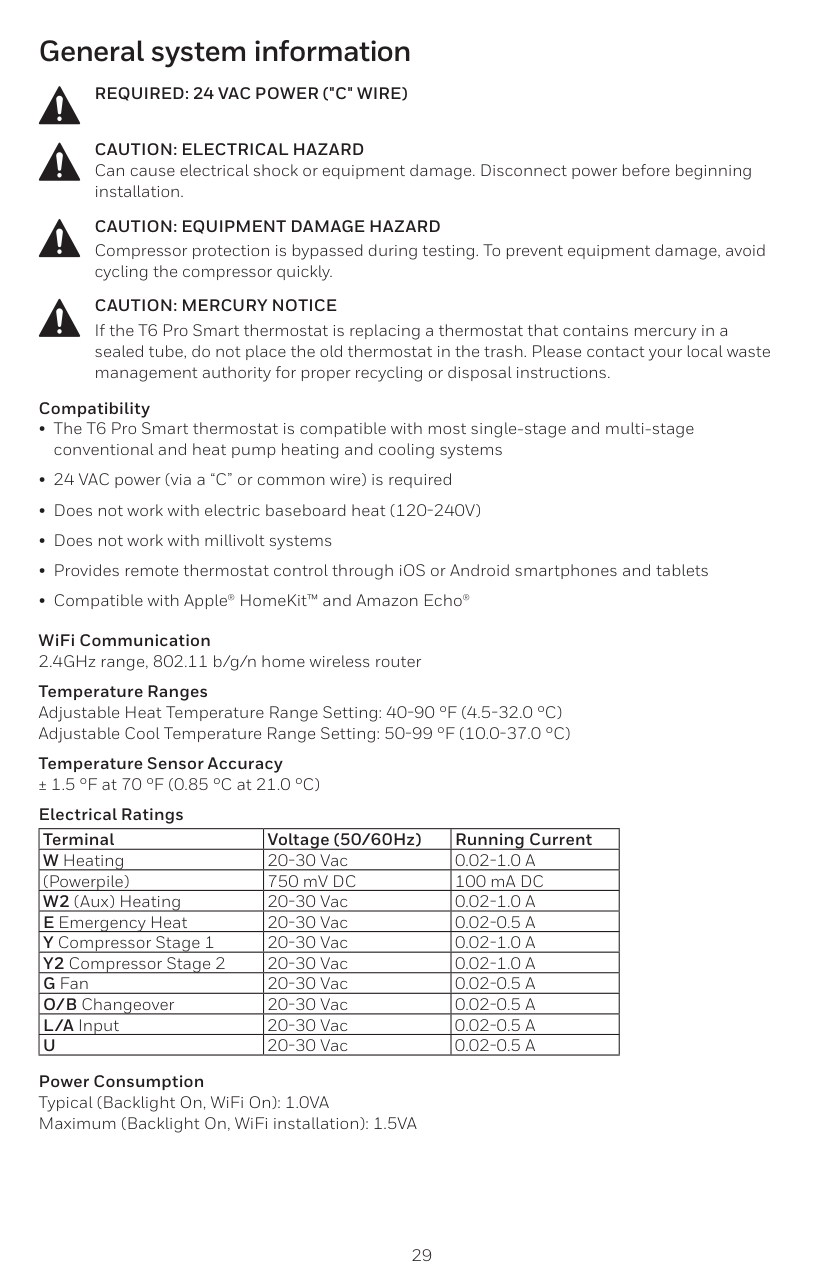 Si el termostato T6 Pro con conexión inteligente remplaza un termostato que contiene mercurio en un tubo sellado, no coloque el viejo termostato en la basura. Comuníquese con la autoridad local de gestión de residuos para obtener instrucciones sobre el reciclado o desecho apropiado.Precaución: Peligro De Daños Al Equipo
