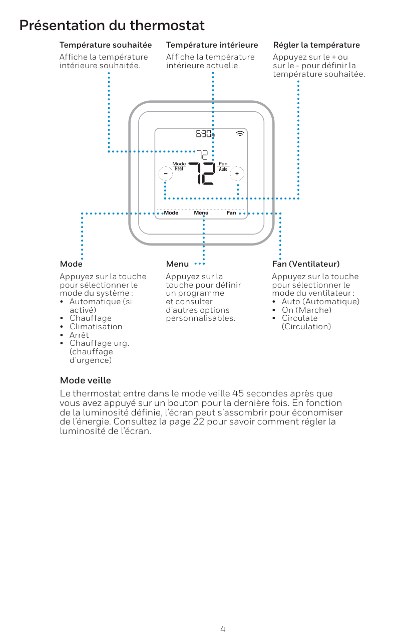 Menu Fan Mode Fan Auto Mode Heat Thermostat overview5