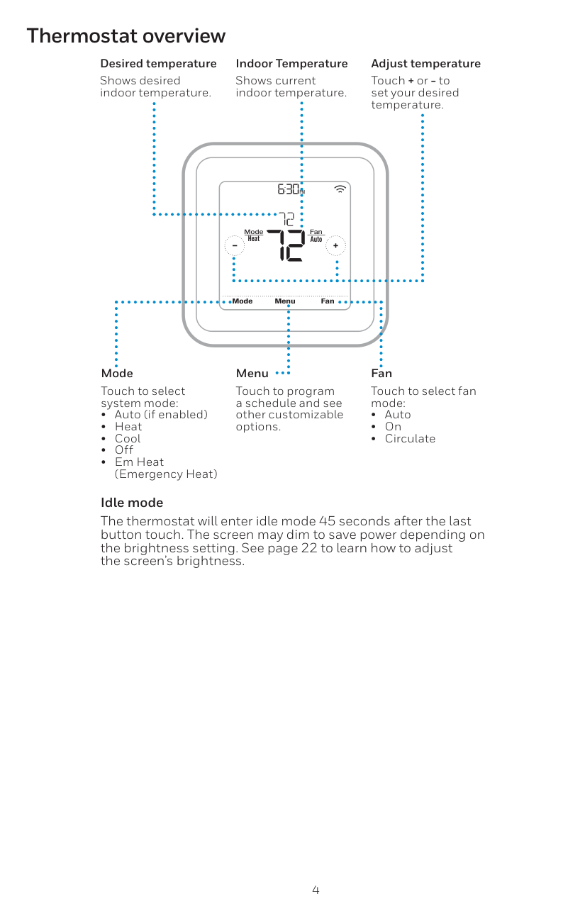Menu Fan Mode Fan Auto Mode Heat Thermostat overview5