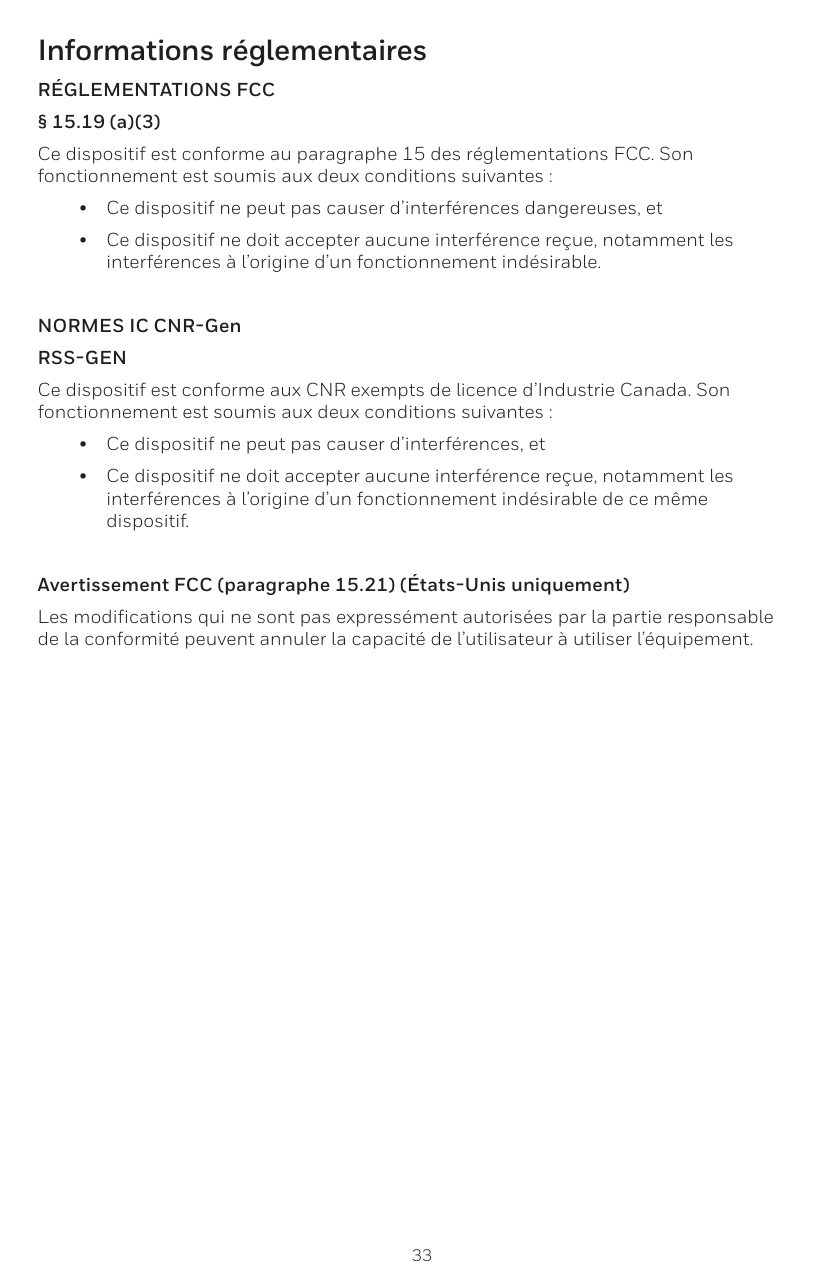 § 15.19 (a)(3) Este dispositivo cumple la parte 15 de las Normas de la Comisión Federal de Comunicaciones (Federal Communications Commission, FCC). El funcionamiento está sujeto a las siguientes dos condiciones:Normas Rss-Gen De Ic