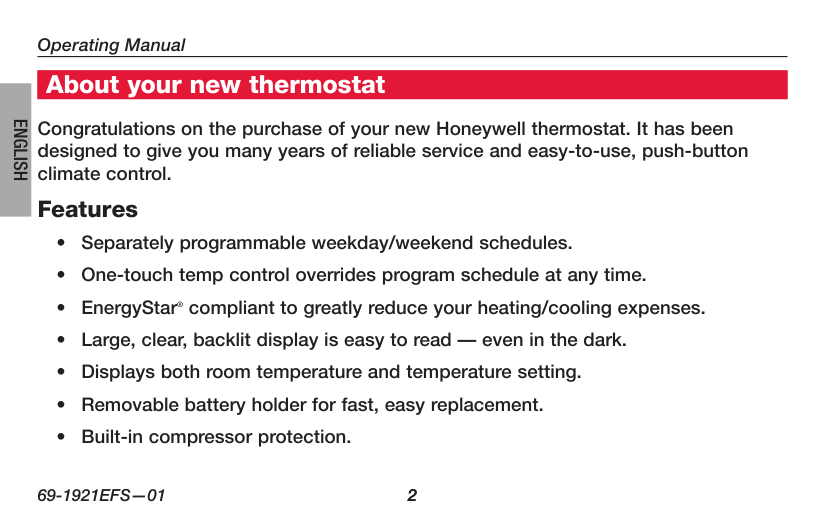 2 About your new thermostatEnglish
