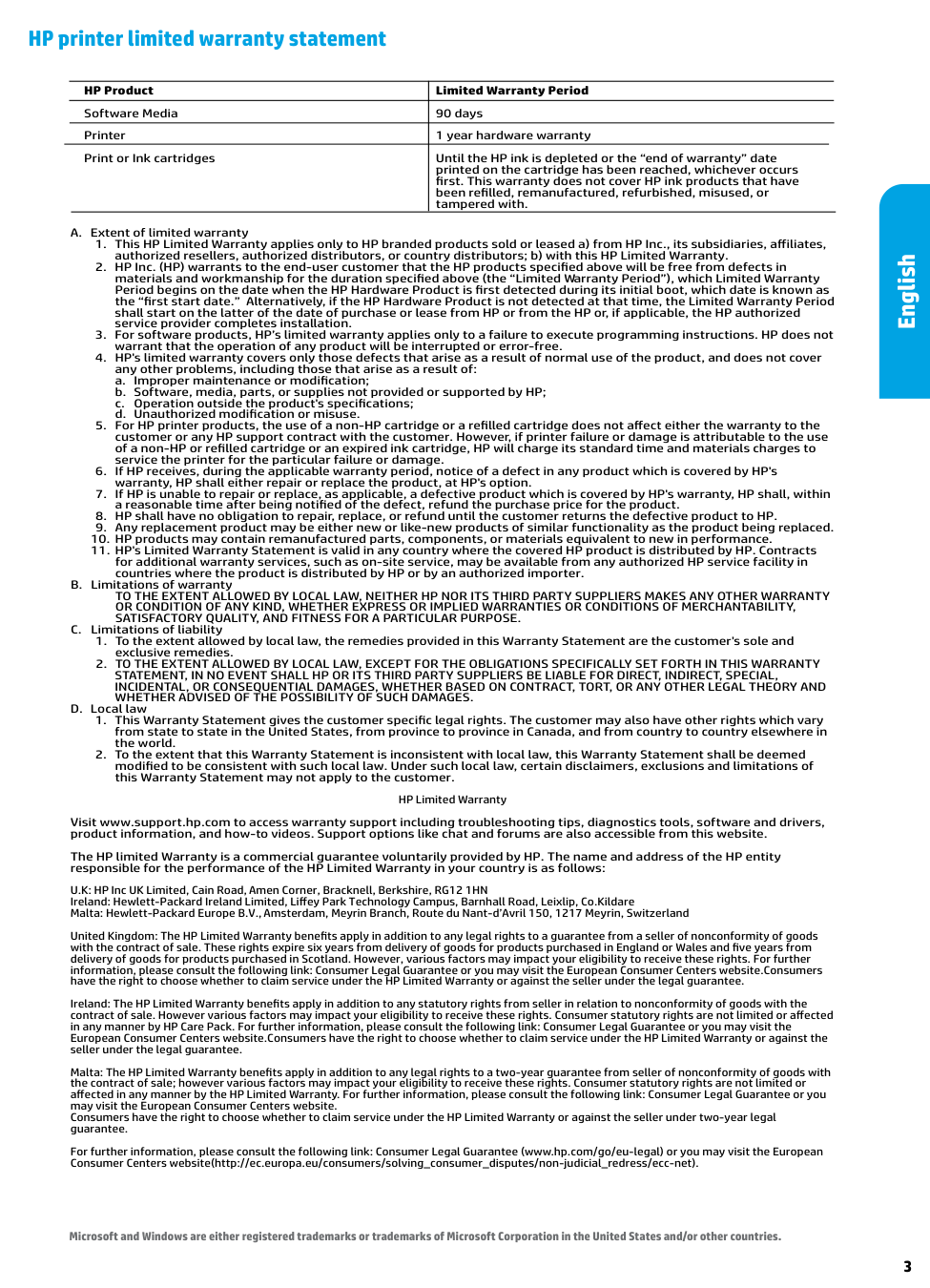 3 HP printer limited warranty statement A. Extent of limited warranty