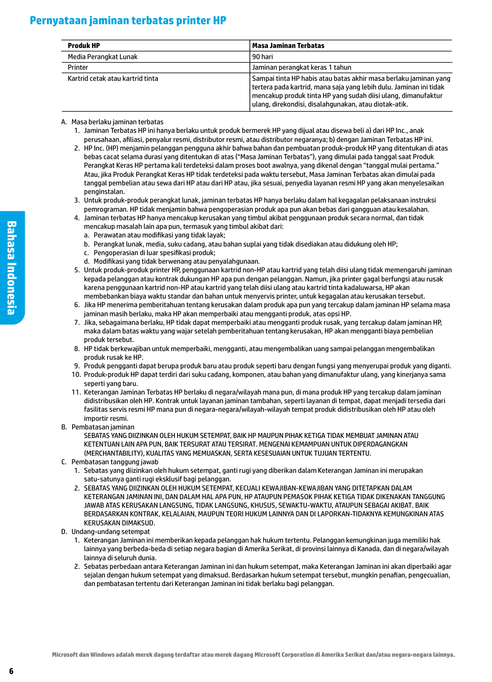 6 Pernyataan jaminan terbatas printer HP A. Masa berlaku jaminan terbatas