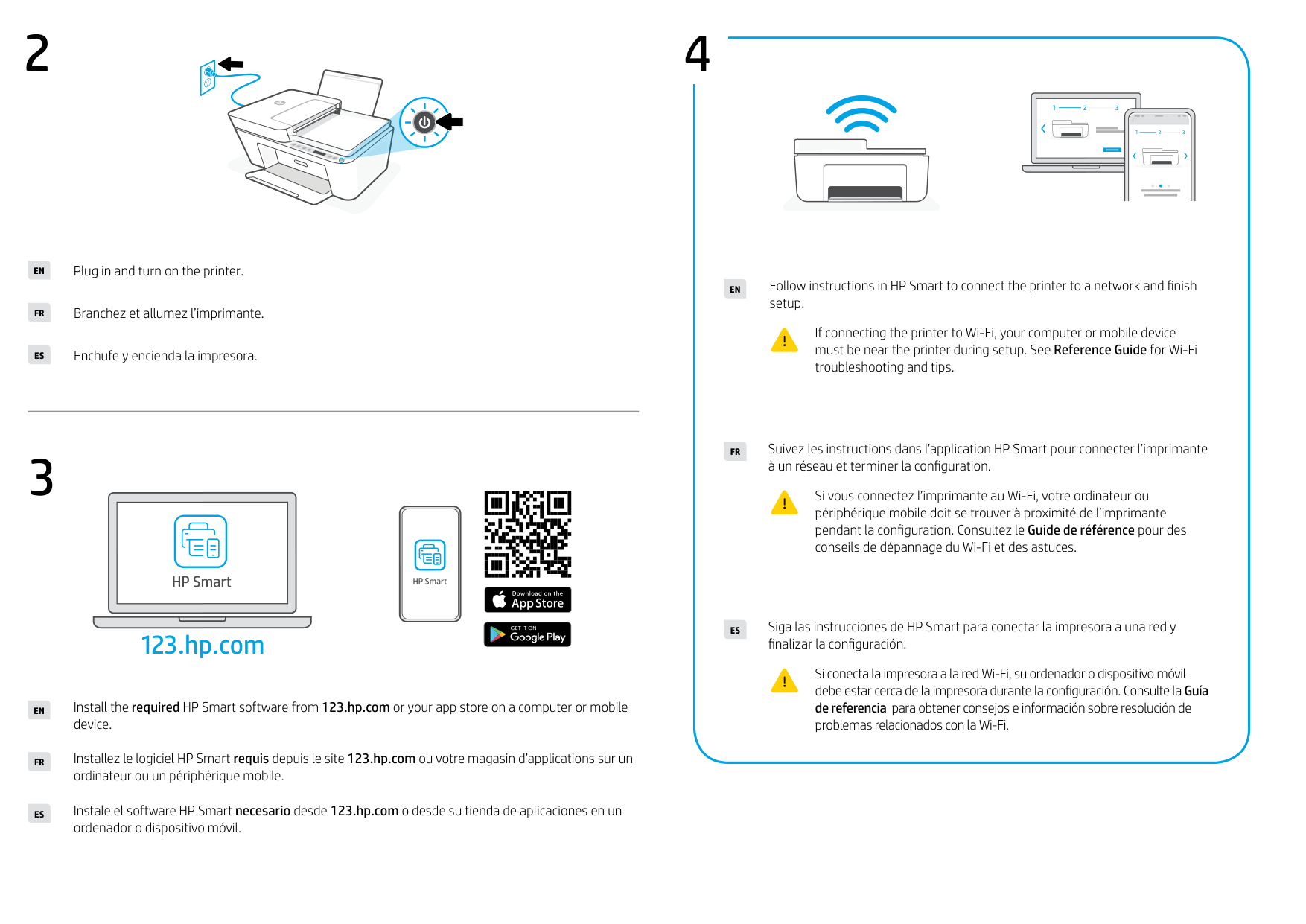 11 2 3 1 2 3 Install the required HP Smart software from 123.hp.com or your app store on a computer or mobile device.