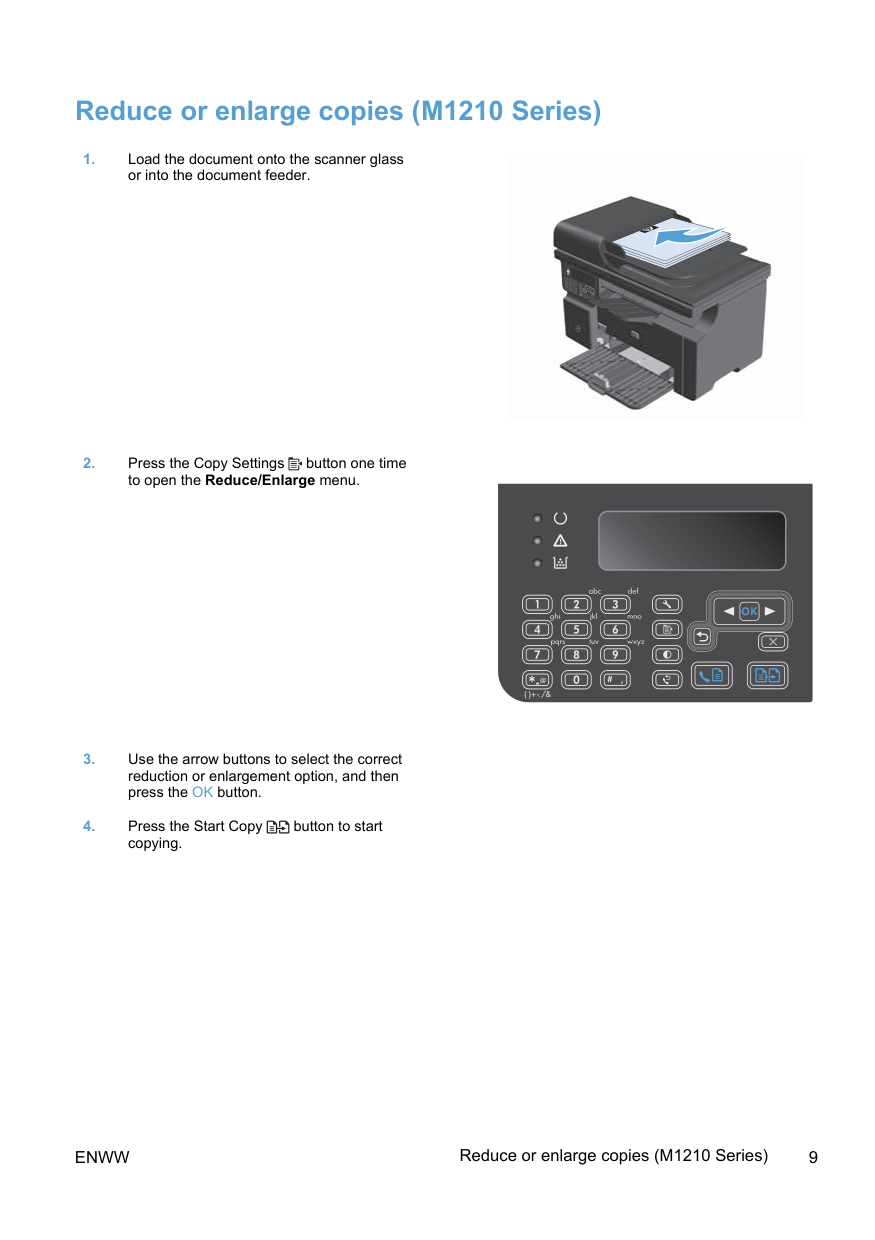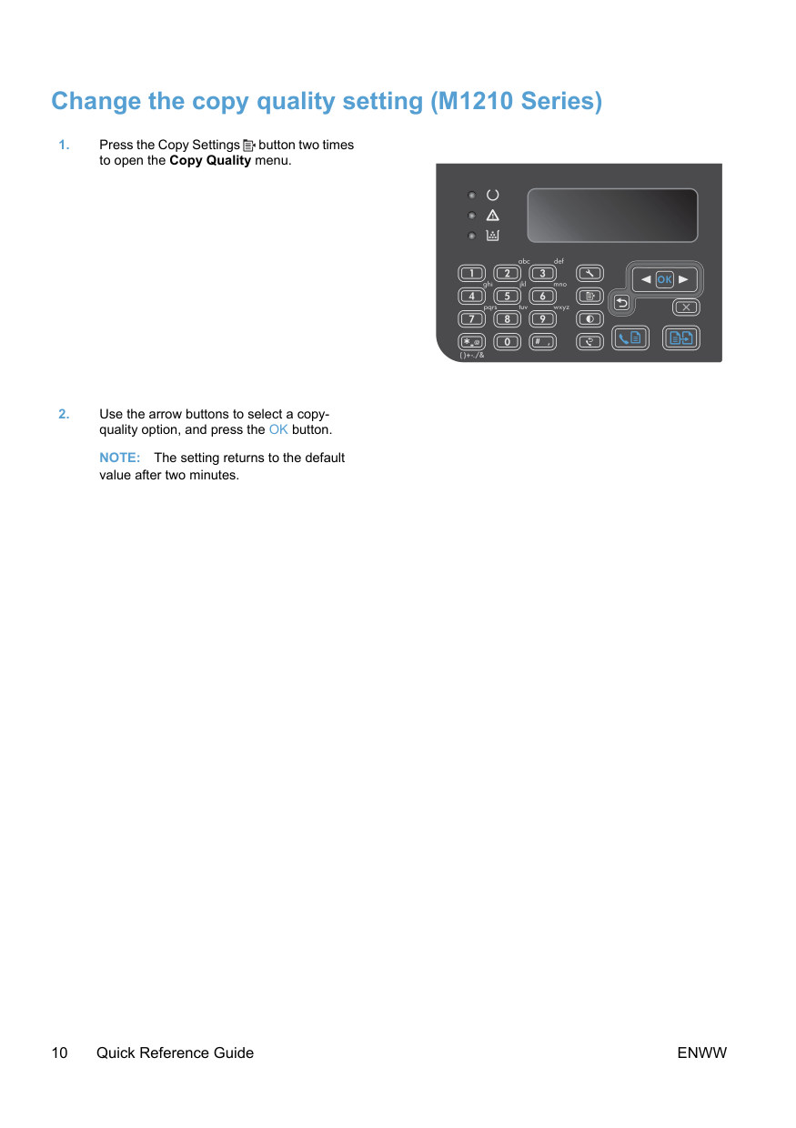 Reduce or enlarge copies (M1210 Series) 9Change the copy quality setting (M1210 Series)