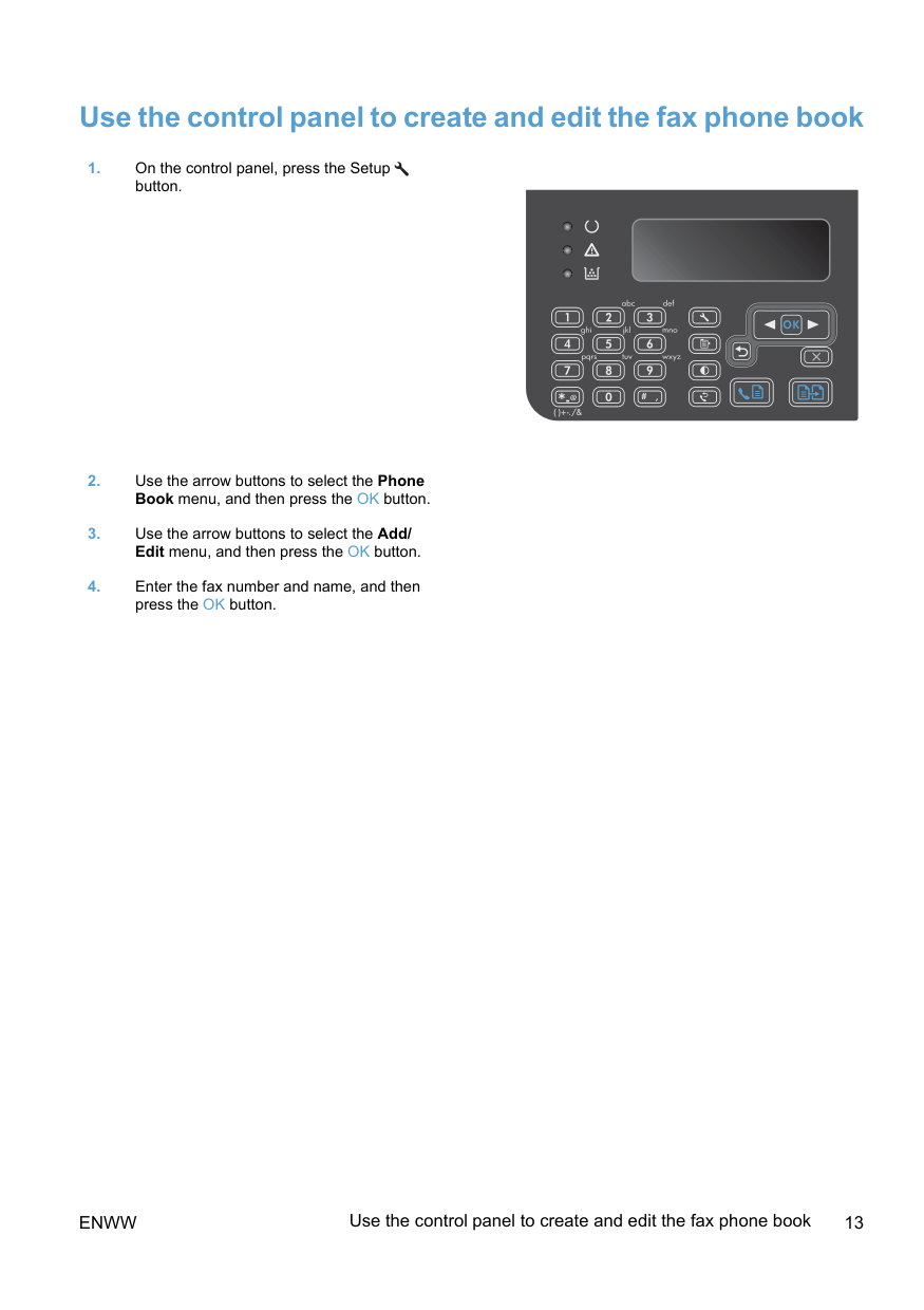 Use the control panel to create and edit the fax phone book 13Fax from the flatbed scanner