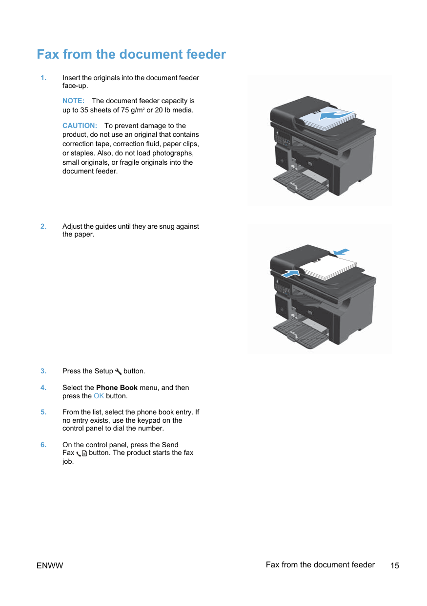 To prevent damage to the product, do not use an original that contains correction tape, correction fluid, paper clips, or staples. Also, do not load photographs, small originals, or fragile originals into the document feeder.Enww