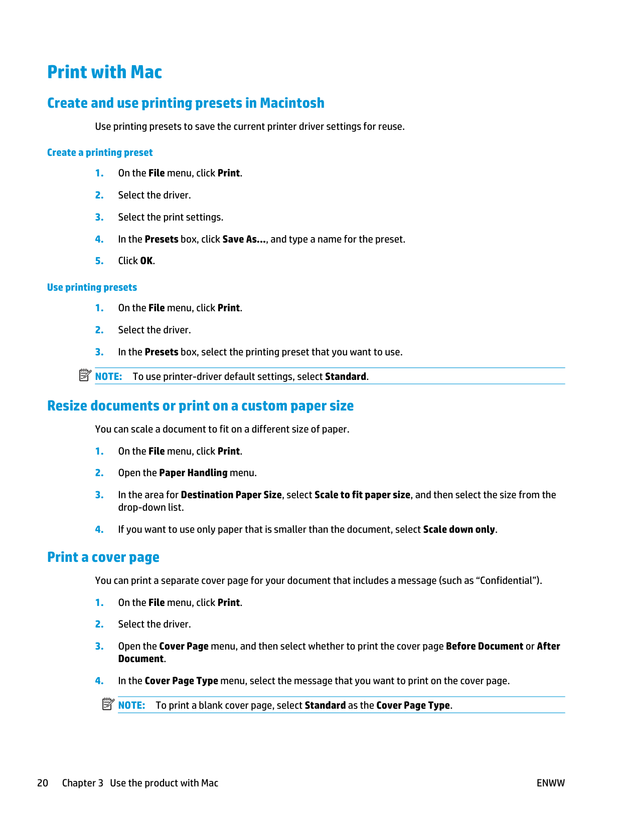To print a blank cover page, select Standard as the Cover Page Type. 20 Chapter 3 Use the product with MacEnww
