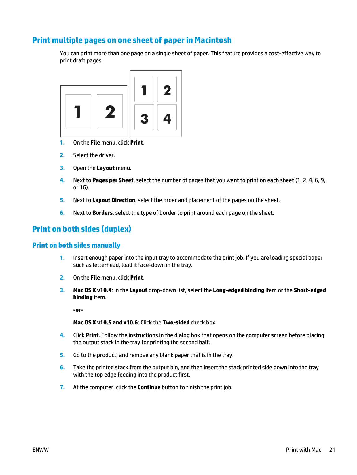Print multiple pages on one sheet of paper in Macintosh You can print more than one page on a single sheet of paper. This feature provides a cost-effective way to print draft pages.