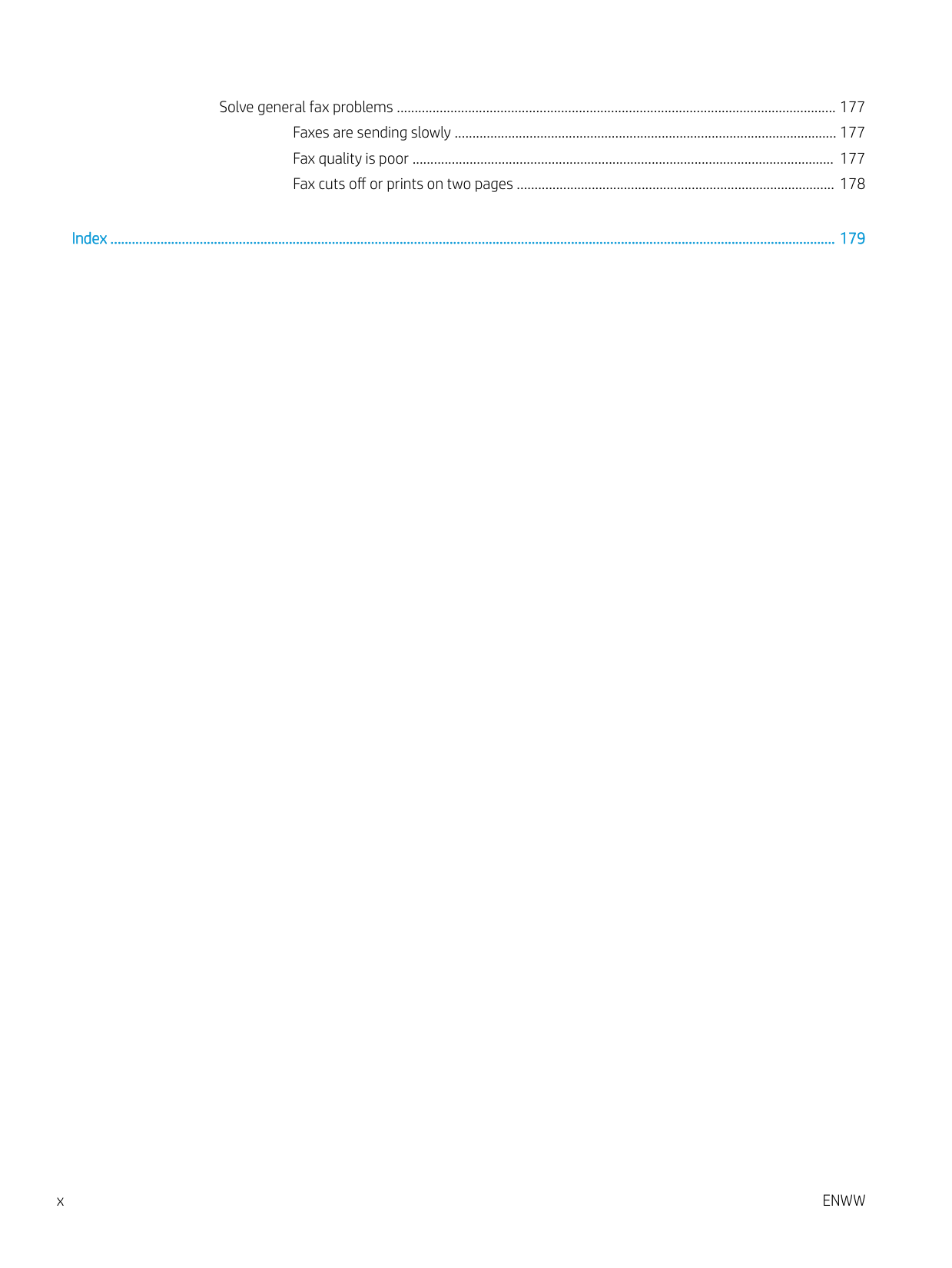 ixSolve general fax problems ........................................................................................................................... 177 Faxes are sending slowly ........................................................................................................... 177 Fax quality is poor ...................................................................................................................... 177 Fax cuts off or prints on two pages ......................................................................................... 178 Index ........................................................................................................................................................................................................... 179 x