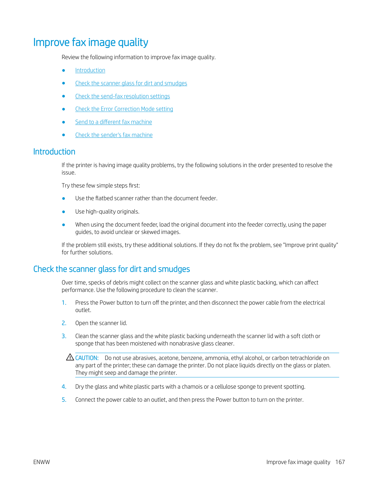 Improve copy and scan image quality 165Caution: