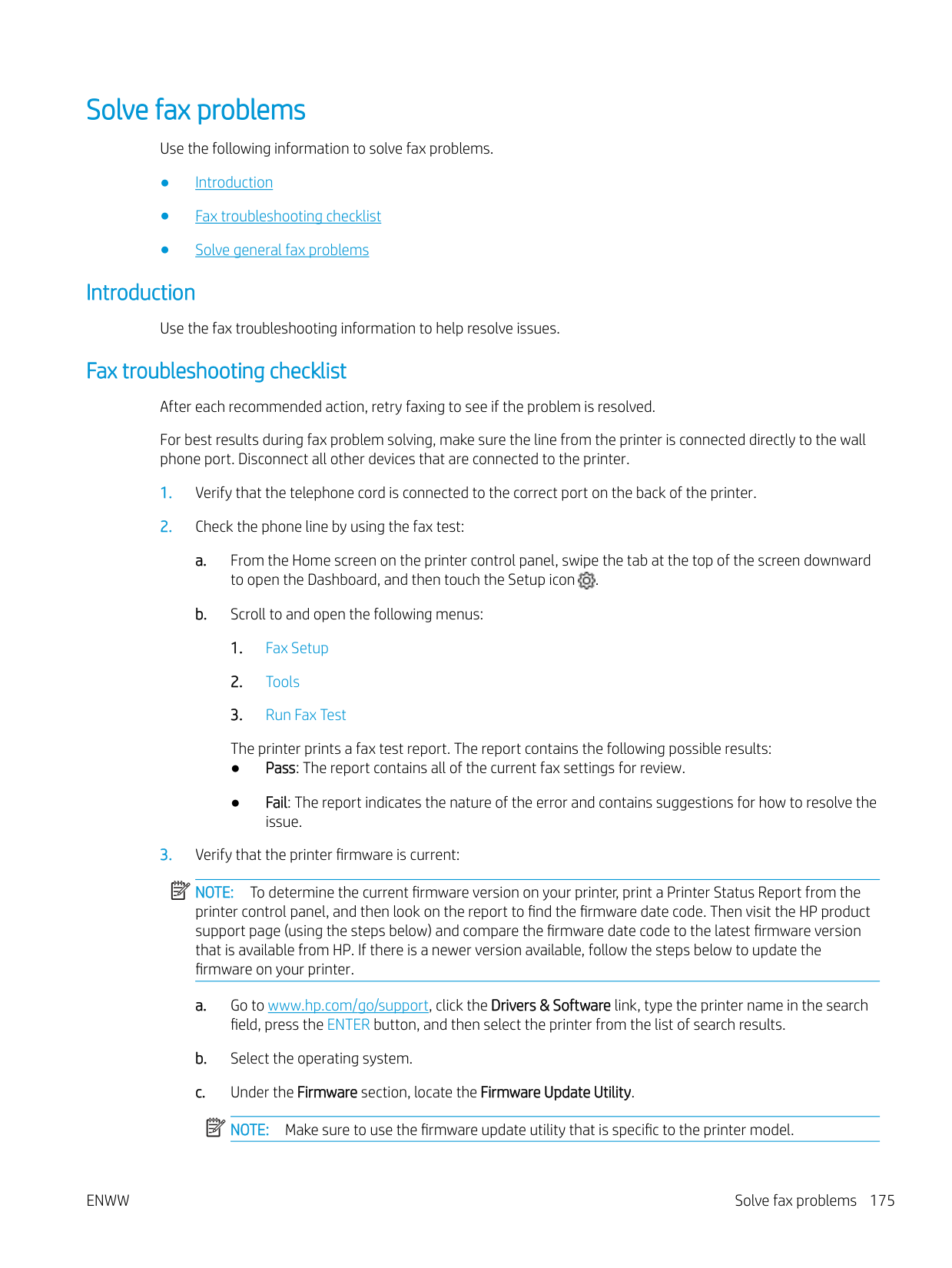 Solve fax problems 175d. Click Download, click Run, and then click Run again. e. When the utility launches, select the printer from the drop-down list, and then click Send Firmware. f. Follow the on-screen instructions to complete the installation, and then click the Exit button to close the utility.