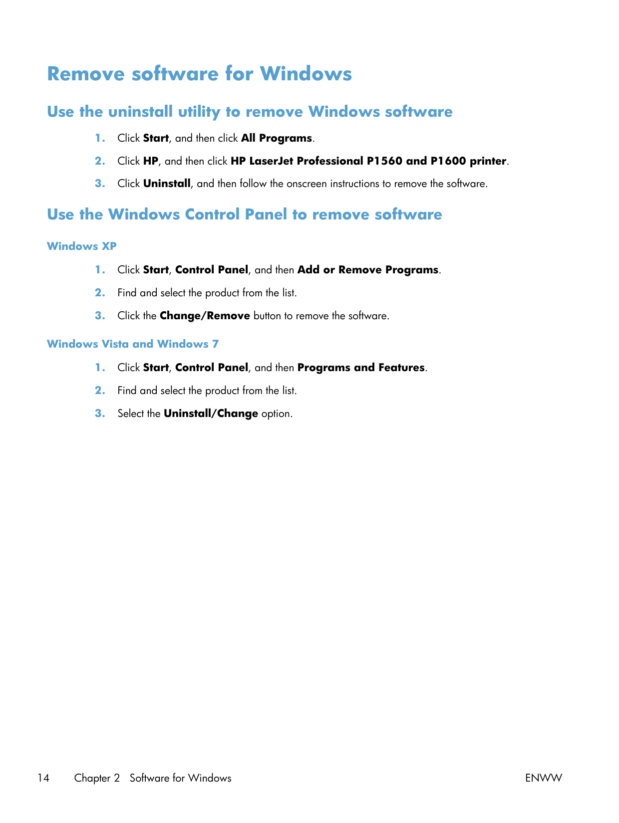 Change printer-driver settings for Windows 13Remove software for Windows Use the uninstall utility to remove Windows software