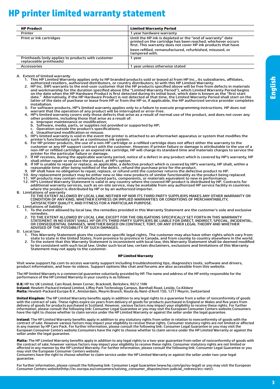 3 HP printer limited warranty statement A. Extent of limited warranty