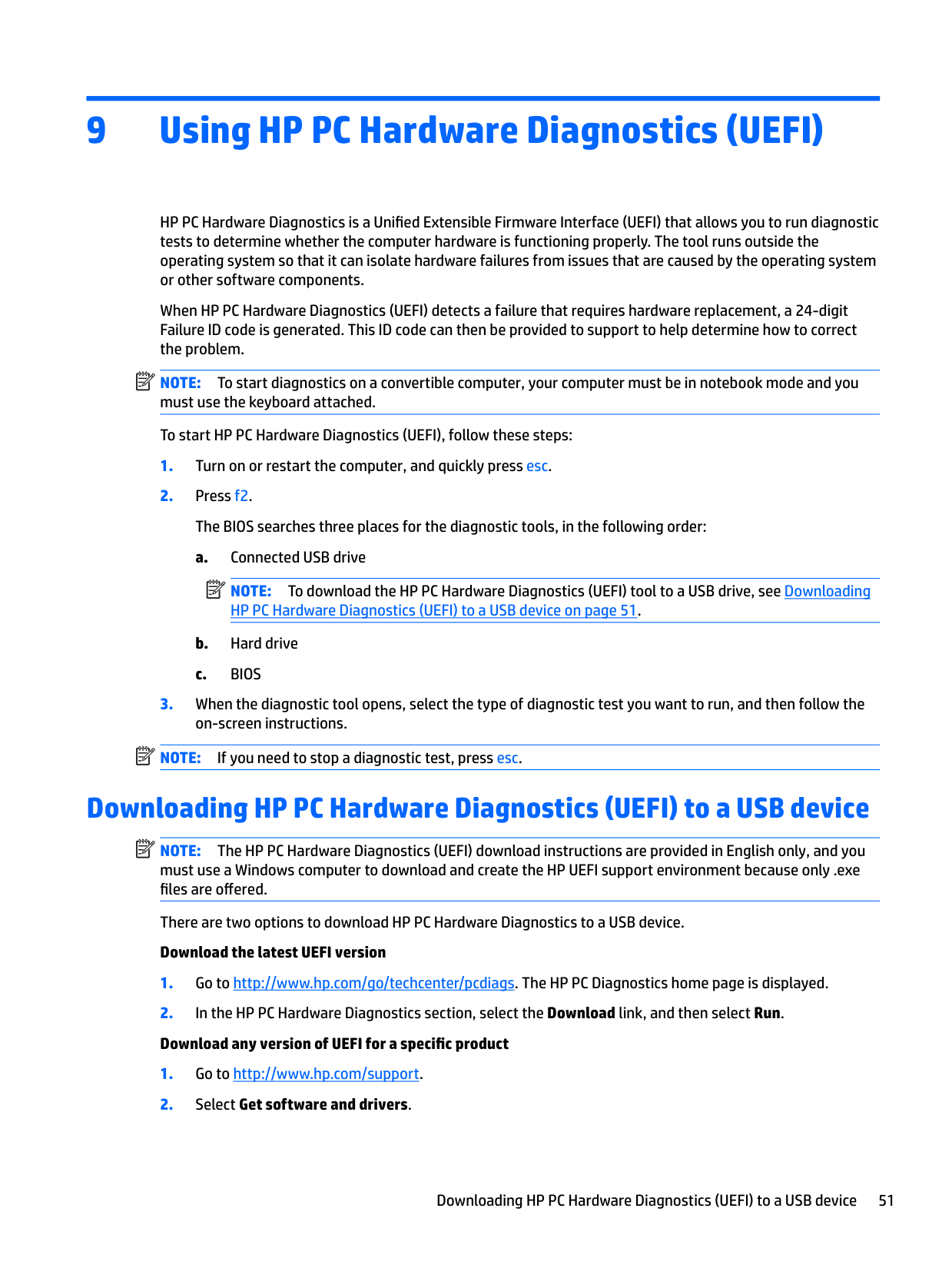 If you need to stop a diagnostic test, press esc. Downloading HP PC Hardware Diagnostics (UEFI) to a USB deviceNote: