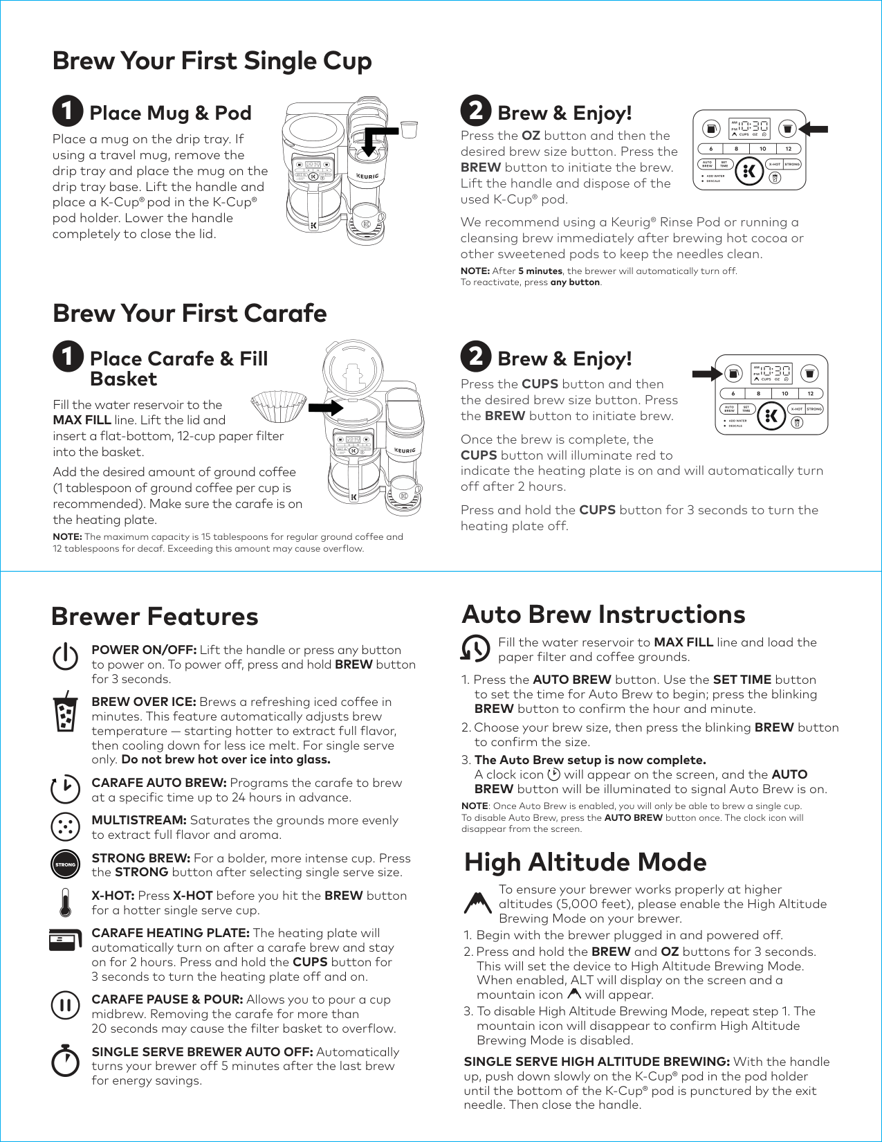 Brew Your First Carafe Brew Your First Single Cup High Altitude Mode To ensure your brewer works properly at higher altitudes (5,000 feet), please enable the High Altitude Brewing Mode on your brewer.
