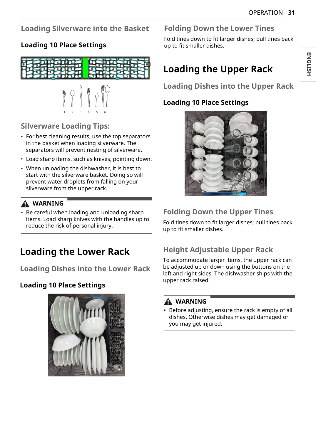 Loading Silverware into the Basket Loading 10 Place Settings Silverware Loading Tips:Warning