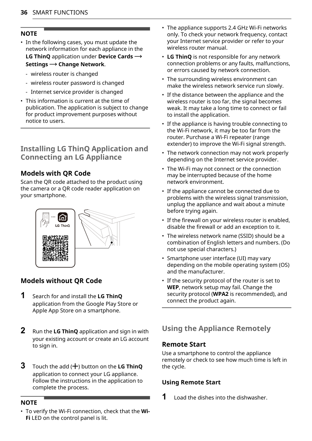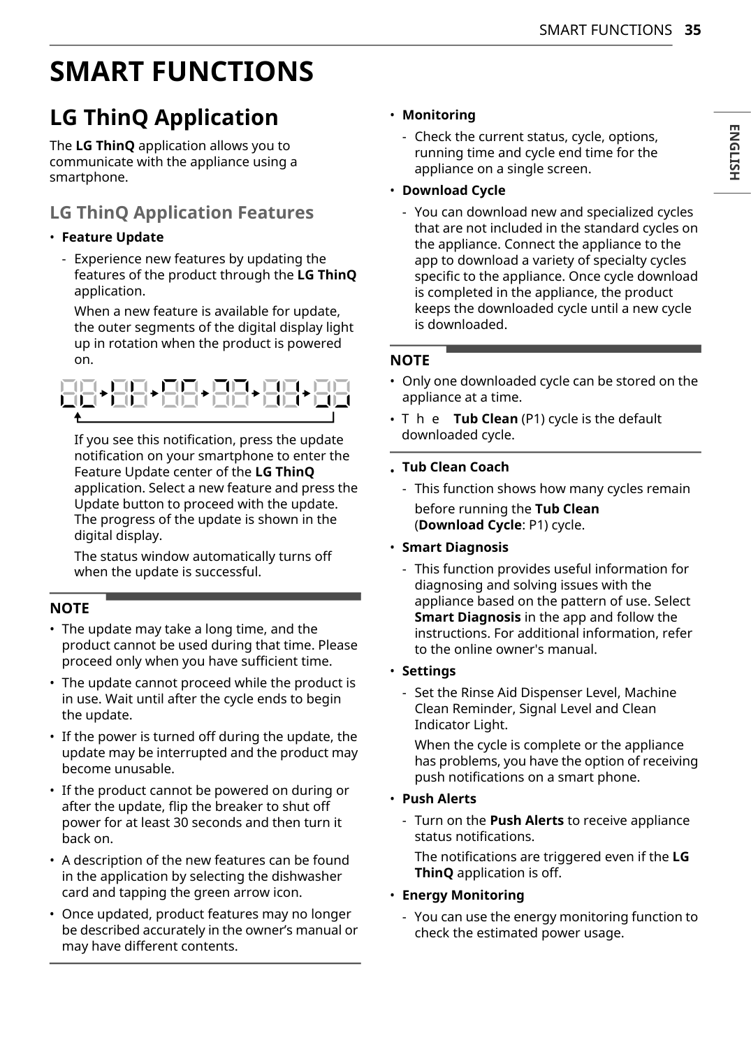 LG ThinQ Application The LG ThinQ application allows you to communicate with the appliance using a smartphone. LG ThinQ Application FeaturesNote
