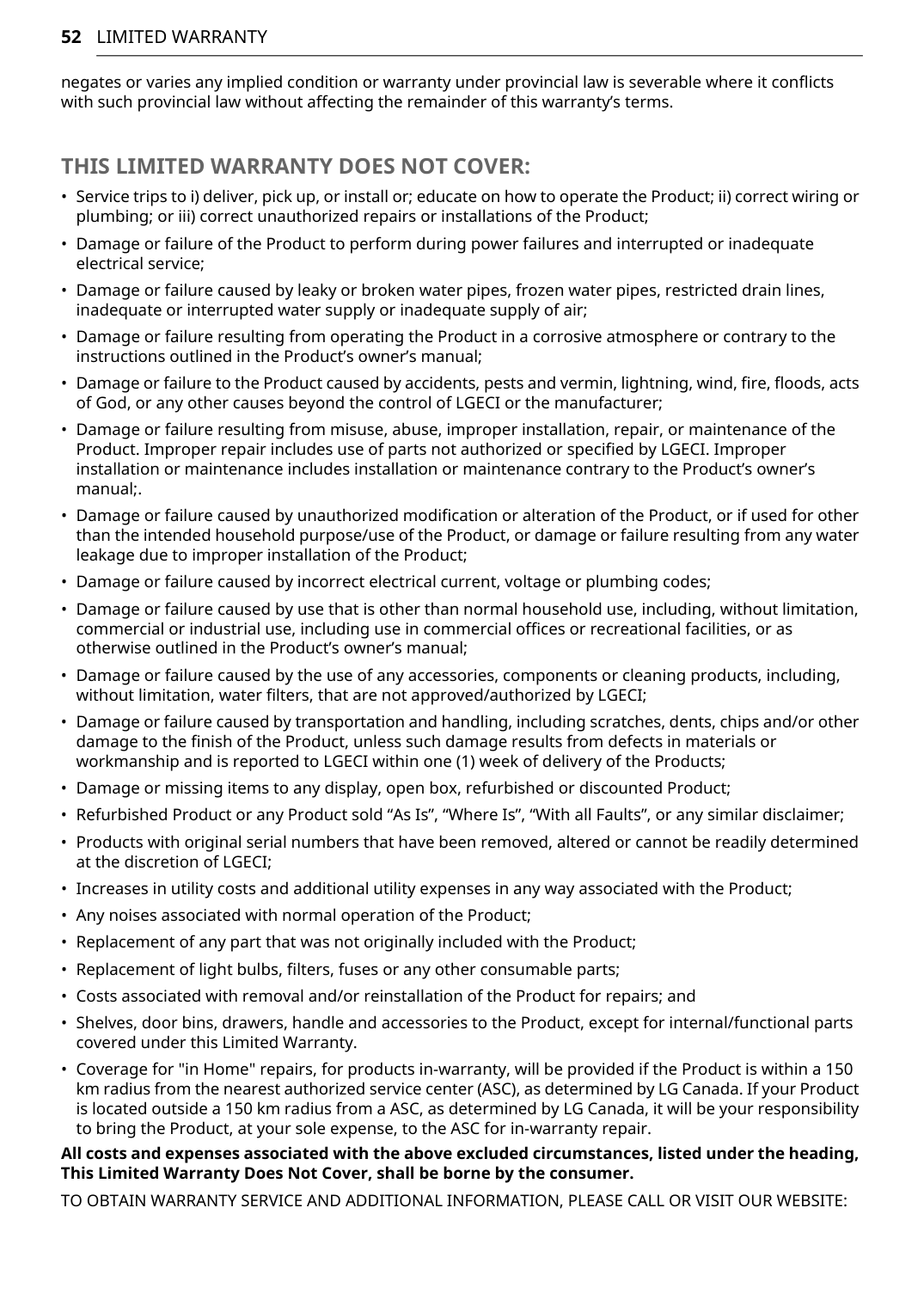 negates or varies any implied condition or warranty under provincial law is severable where it conflicts with such provincial law without affecting the remainder of this warranty’s terms.This Limited Warranty Does Not Cover: