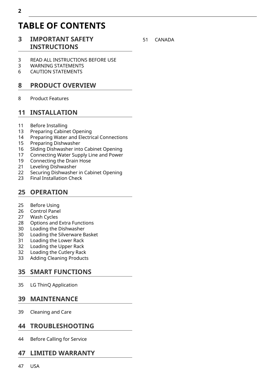 www.lg.com Copyright © 2024 LG Electronics. All Rights Reserved Read this owner’s manual thoroughly before operating the appliance and keep it handy for reference at all times. This abridged owner's manual addresses user safety, precautions, and installation information. To view the complete owner's manual, you may:Table Of Contents