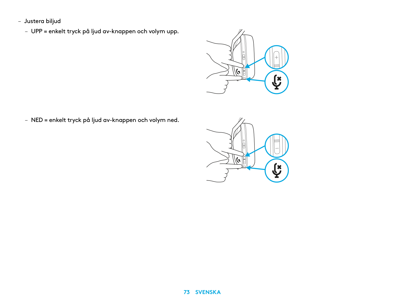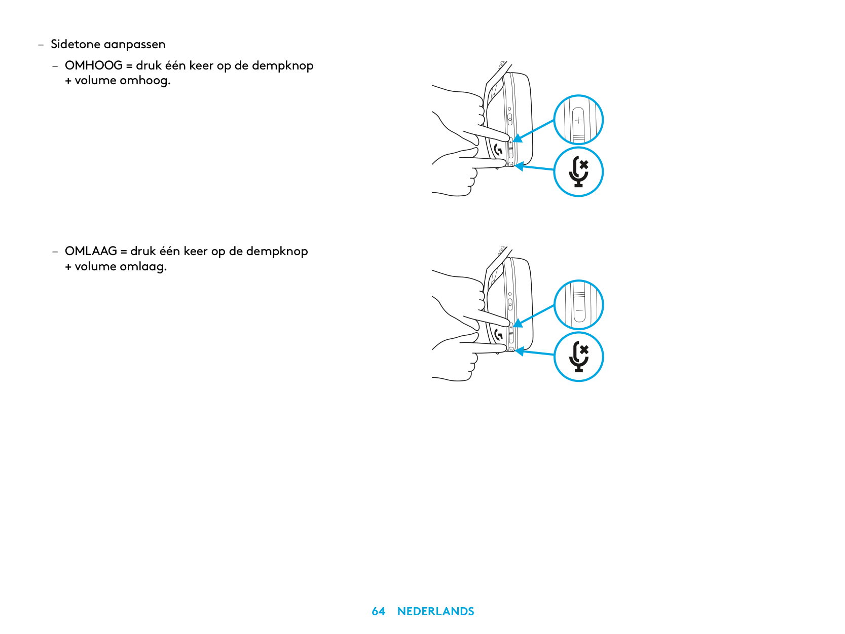 – Adjust Sidetone – UP = Single press Mute button + Volume UP. – DOWN = Single press Mute button + Volume DOWN.11 English