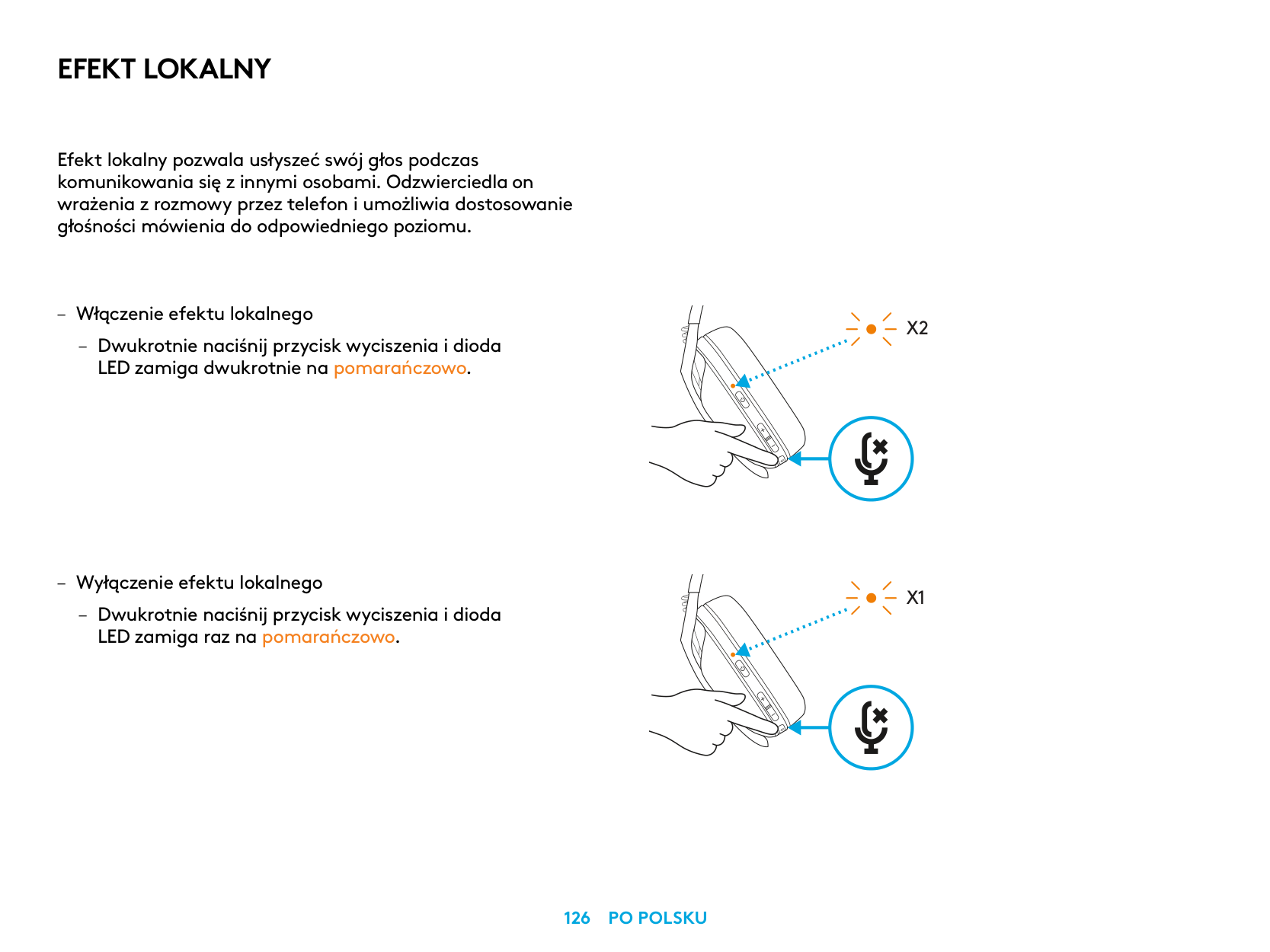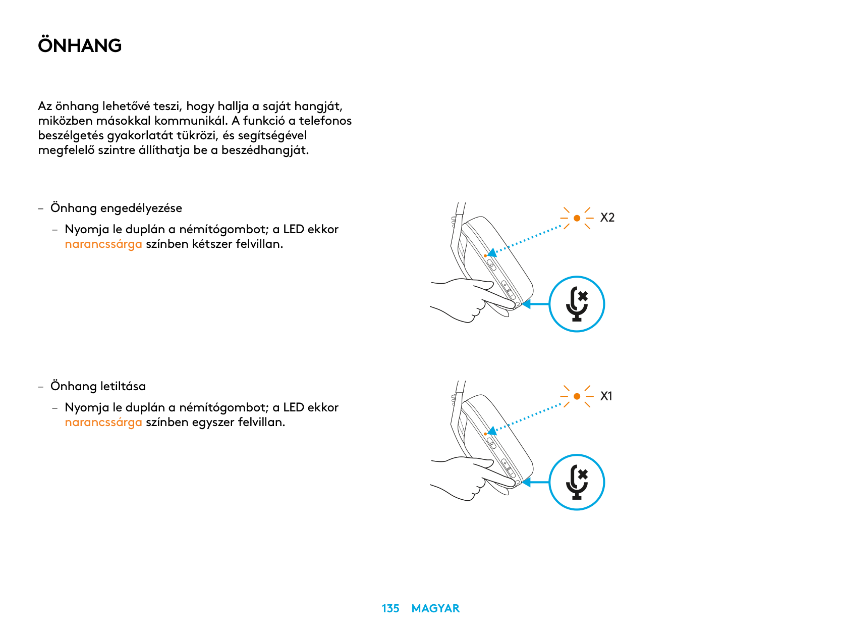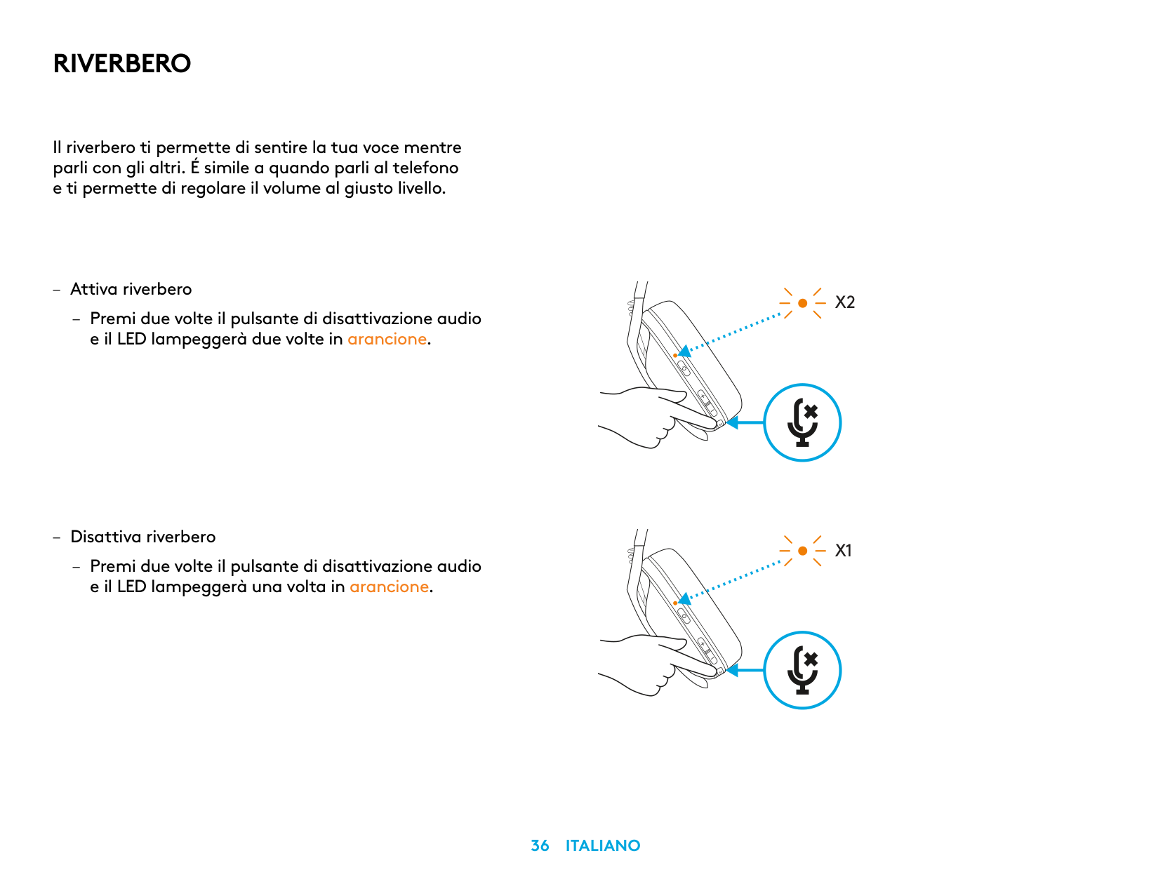 – Disable Sidetone – Double press the Mute button and the LED will flash once in orange.X2