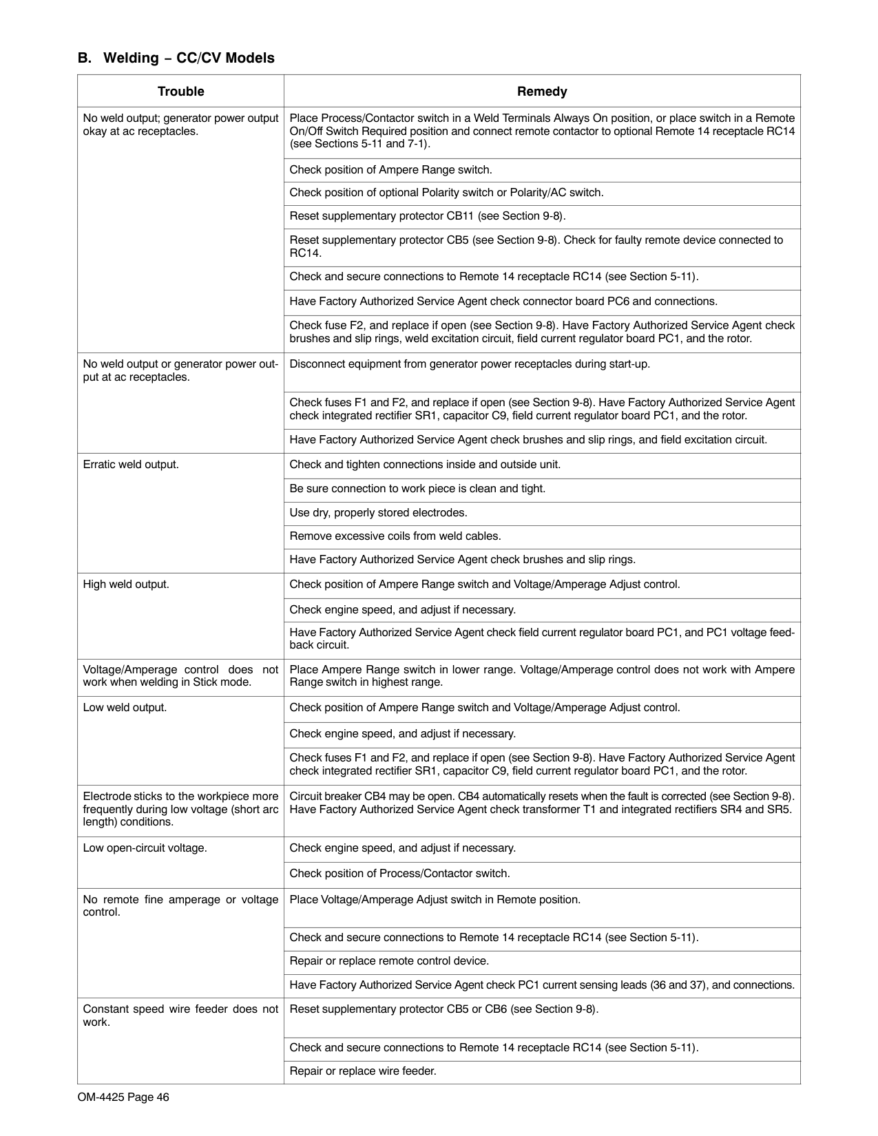 Section 7 − Operating Welding Generator − Cc/Cv Models
