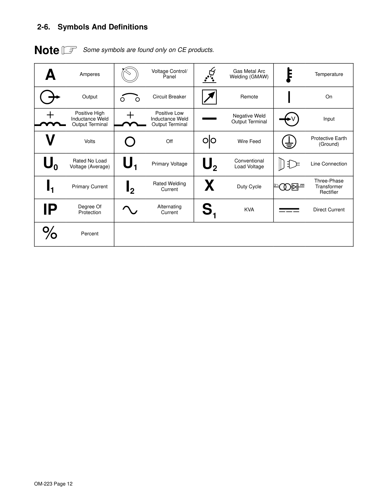 OM-223 Page 12 2-6. Symbols And Definitions Some symbols are found only on CE products. Note
