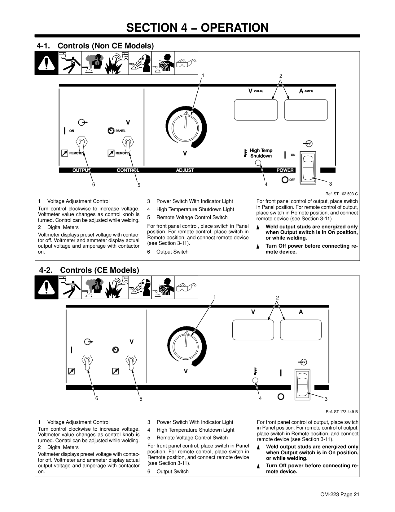 20 . . . . . . . . . . . . . . . . . . . . . . . . . . . . . . . . . . . . . . . . . . . . . . . . . . . . . . . . . . . . . 4-1. Controls (Non CE Models) 20 . . . . . . . . . . . . . . . . . . . . . . . . . . . . . . . . . . . . . . . . . . . . . . . . . . . . . . . 4-2. Controls (CE Models) 20 . . . . . . . . . . . . . . . . . . . . . . . . . . . . . . . . . . . . . . . . . . . . . . . . . . . . . . . . . . .Section 5 − Maintenance & Troubleshooting