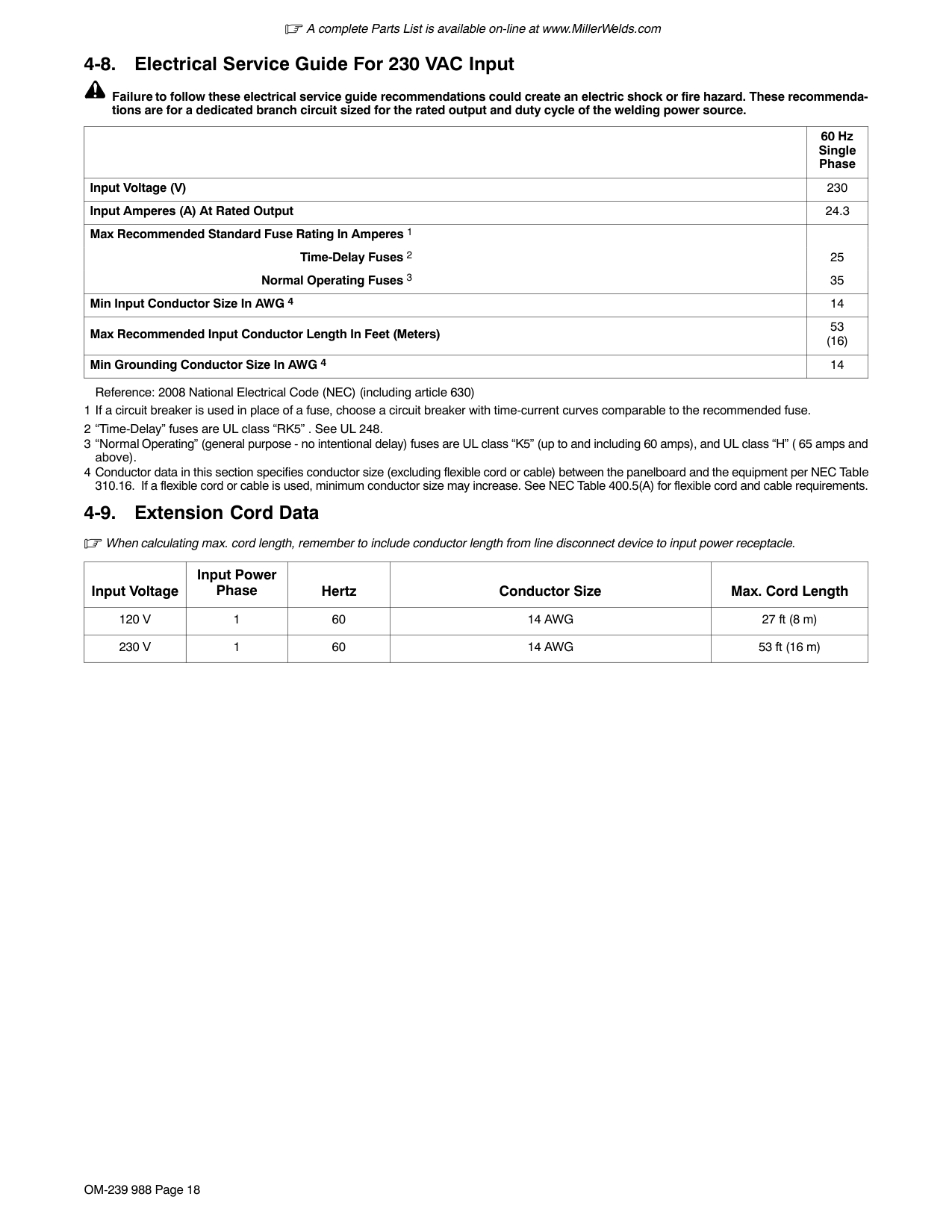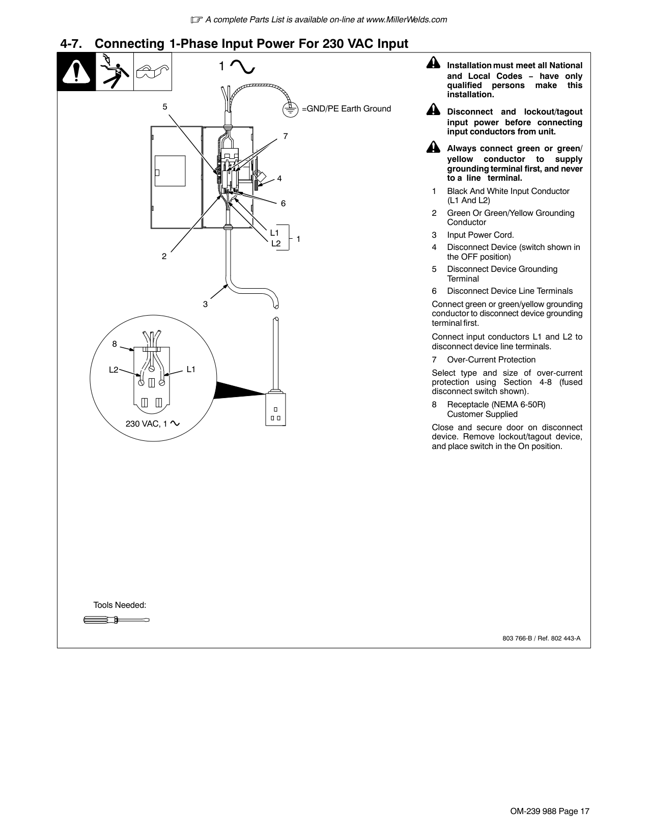 A complete Parts List is available on-line at www.MillerWelds.com OM-239 988 Page 11