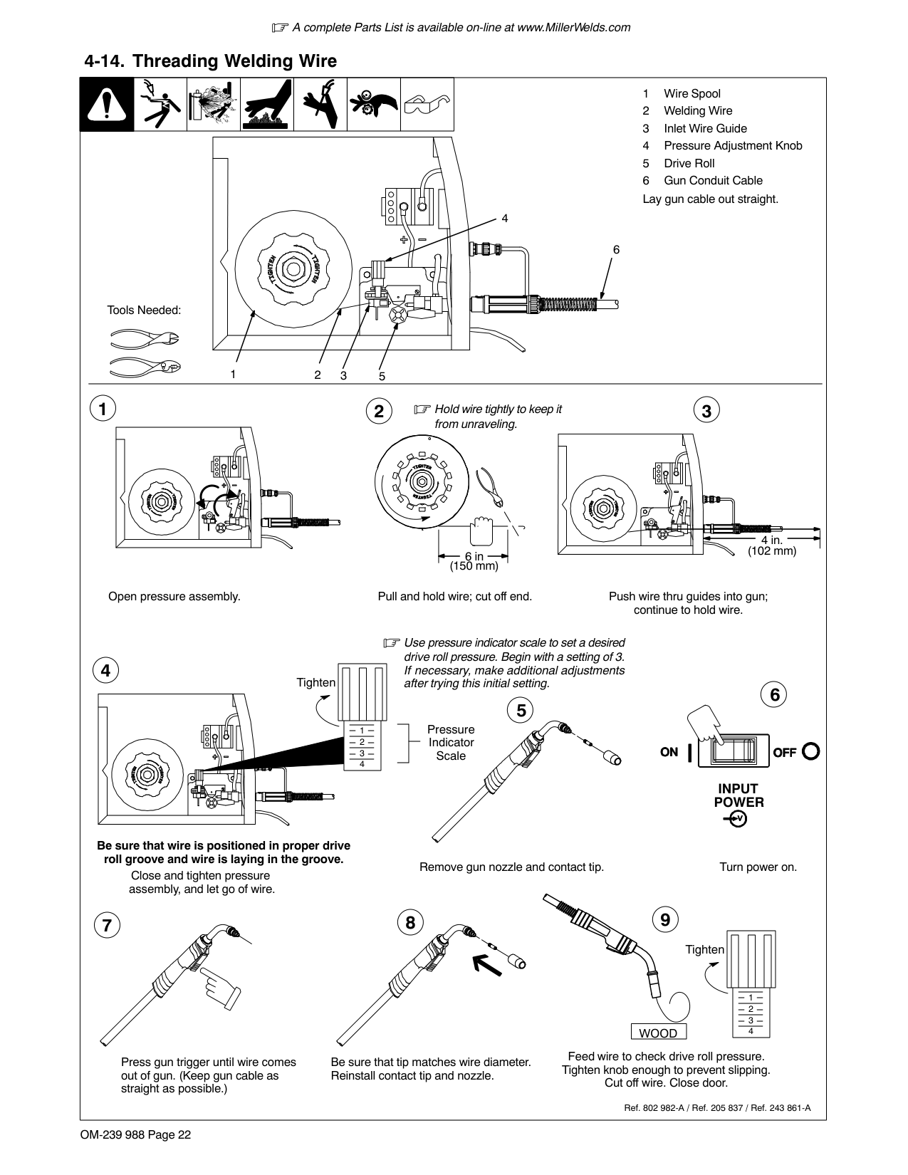 248 282 M-100 Replacement Gun 10 ft length/.030-.035 wire size A complete Parts List is available on-line at www.MillerWelds.comWarranty Questions? Call