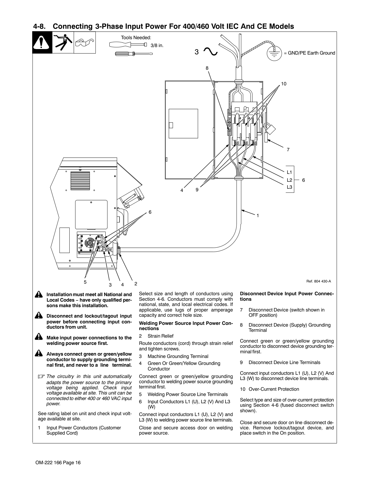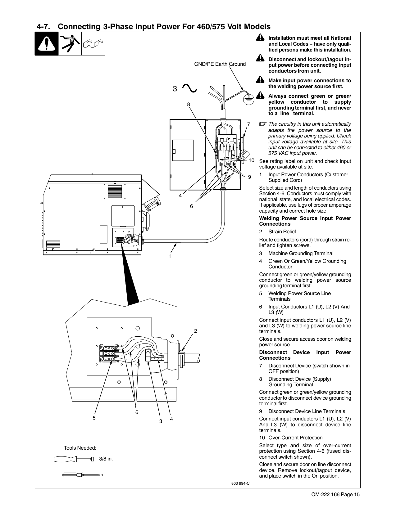 OM-222 166 Page 15 4-7. Connecting 3-Phase Input Power For 460/575 Volt Models