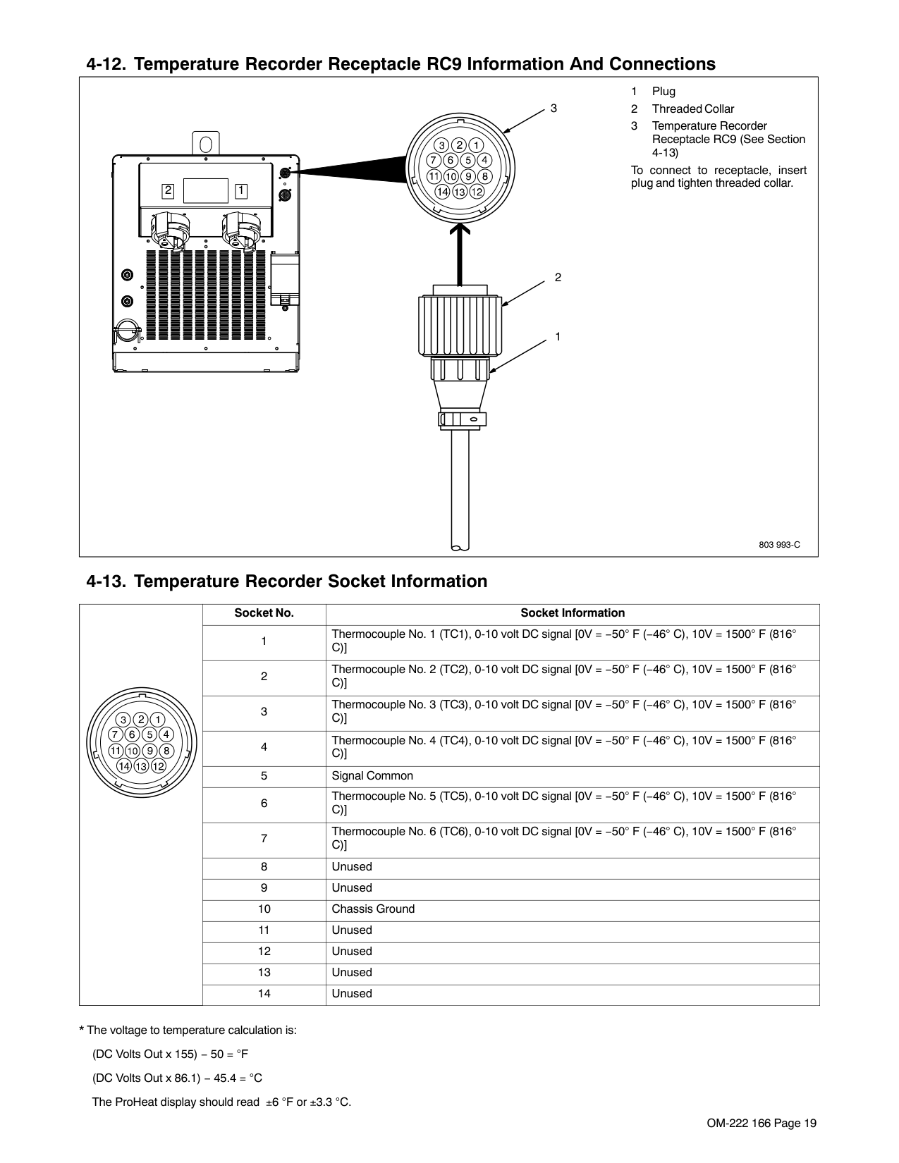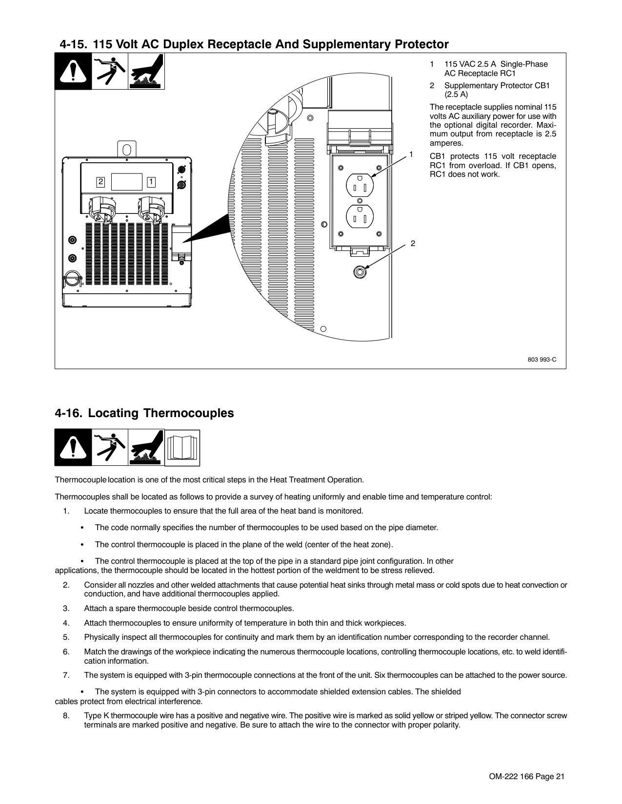 12 . . . . . . . . . . . . . . . . . . . . . . . . . . . . . . . . . . . . . . . . . . . . . . . . . . . . . . . . . . . . . . . . 4-1. Important Information Regarding CE Products (Sold Within The EU) 12 . . . . . . . . . . . . . . . . . . . . . . . . . . 4-2. Serial Number and Rating Label Location 12 . . . . . . . . . . . . . . . . . . . . . . . . . . . . . . . . . . . . . . . . . . . . . . . . . 4-3. Specifications 12 . . . . . . . . . . . . . . . . . . . . . . . . . . . . . . . . . . . . . . . . . . . . . . . . . . . . . . . . . . . . . . . . . . . . . . . . 4-4. Selecting A Location 13 . . . . . . . . . . . . . . . . . . . . . . . . . . . . . . . . . . . . . . . . . . . . . . . . . . . . . . . . . . . . . . . . . . 4-5. Tipping 14 . . . . . . . . . . . . . . . . . . . . . . . . . . . . . . . . . . . . . . . . . . . . . . . . . . . . . . . . . . . . . . . . . . . . . . . . . . . . . 4-6. Electrical Service Guide 14 . . . . . . . . . . . . . . . . . . . . . . . . . . . . . . . . . . . . . . . . . . . . . . . . . . . . . . . . . . . . . . . 4-7. Connecting 3-Phase Input Power For 460/575 Volt Models 15 . . . . . . . . . . . . . . . . . . . . . . . . . . . . . . . . . . 4-8. Connecting 3-Phase Input Power For 400/460 Volt IEC And CE Models 16 . . . . . . . . . . . . . . . . . . . . . . . 4-9. Power Source Output Connections 17 . . . . . . . . . . . . . . . . . . . . . . . . . . . . . . . . . . . . . . . . . . . . . . . . . . . . . . 4-10. Remote 14 Receptacle RC14 Information and Connections 18 . . . . . . . . . . . . . . . . . . . . . . . . . . . . . . . . . 4-11. Remote 14 Socket Information 18 . . . . . . . . . . . . . . . . . . . . . . . . . . . . . . . . . . . . . . . . . . . . . . . . . . . . . . . . . . 4-12. Temperature Recorder Receptacle RC9 Information And Connections 19 . . . . . . . . . . . . . . . . . . . . . . . . 4-13. Temperature Recorder Socket Information 19 . . . . . . . . . . . . . . . . . . . . . . . . . . . . . . . . . . . . . . . . . . . . . . . . 4-14. Secondary Insulation Protection 20 . . . . . . . . . . . . . . . . . . . . . . . . . . . . . . . . . . . . . . . . . . . . . . . . . . . . . . . . 4-15. 115 Volt AC Duplex Receptacle And Supplementary Protector 21 . . . . . . . . . . . . . . . . . . . . . . . . . . . . . . . 4-16. Locating Thermocouples 21 . . . . . . . . . . . . . . . . . . . . . . . . . . . . . . . . . . . . . . . . . . . . . . . . . . . . . . . . . . . . . . 4-17. Attaching Welded Thermocouples 23 . . . . . . . . . . . . . . . . . . . . . . . . . . . . . . . . . . . . . . . . . . . . . . . . . . . . . . . 4-18. Using Contact Thermocouple Sensors 24 . . . . . . . . . . . . . . . . . . . . . . . . . . . . . . . . . . . . . . . . . . . . . . . . . . .Section 5 − Components And Controls