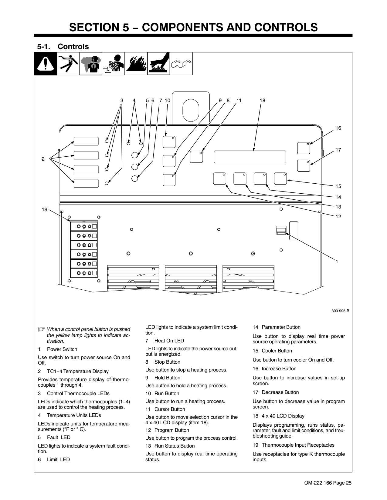 25 . . . . . . . . . . . . . . . . . . . . . . . . . . . . . . . . . . . . . . . . . . . . . . . . 5-1. Controls 25 . . . . . . . . . . . . . . . . . . . . . . . . . . . . . . . . . . . . . . . . . . . . . . . . . . . . . . . . . . . . . . . . . . . . . . . . . . . .Section 6 − Setup And Operation