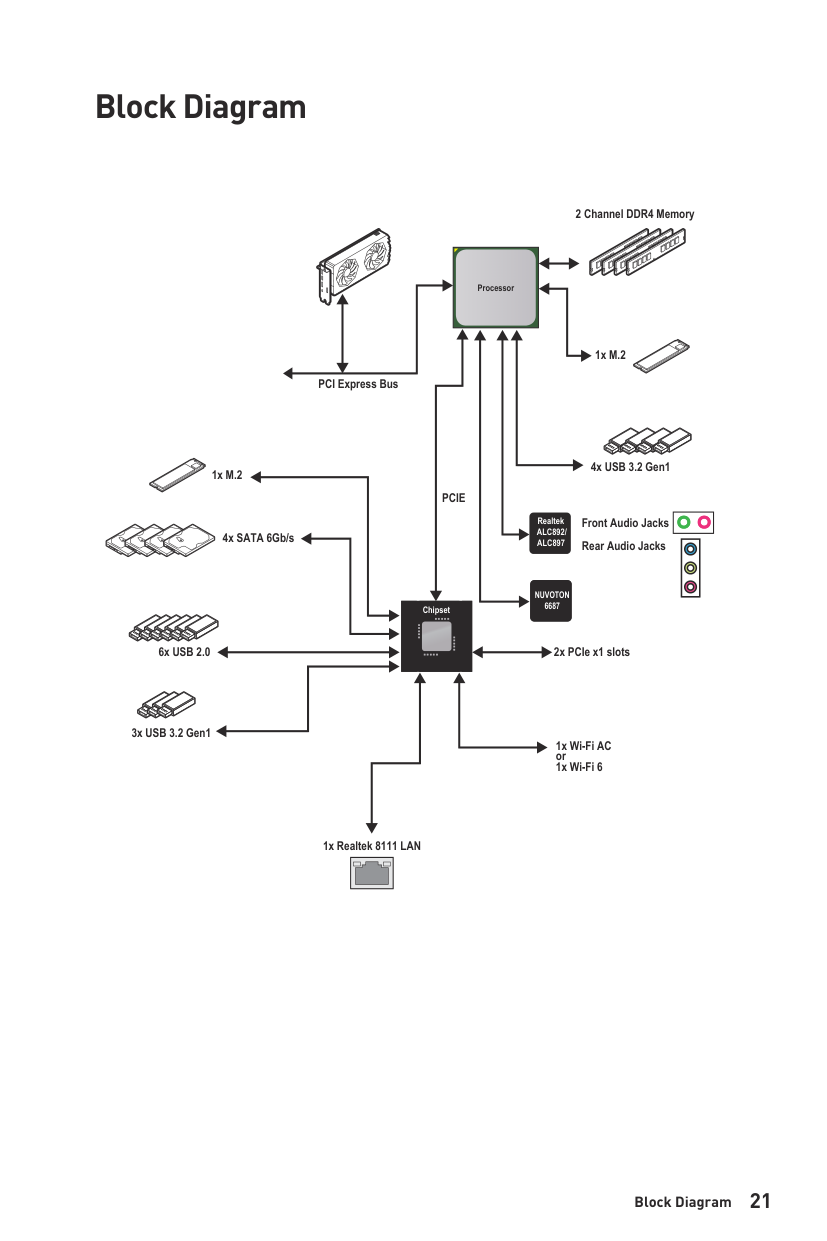 ▪4x USB 3.2 Gen 1 5Gbps Type-A ports on the back panel Audio Realtek® ALC892/ ALC897 Codec