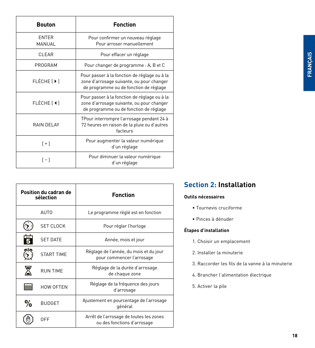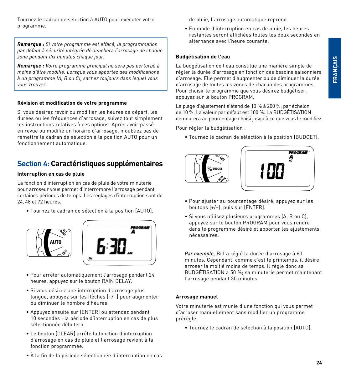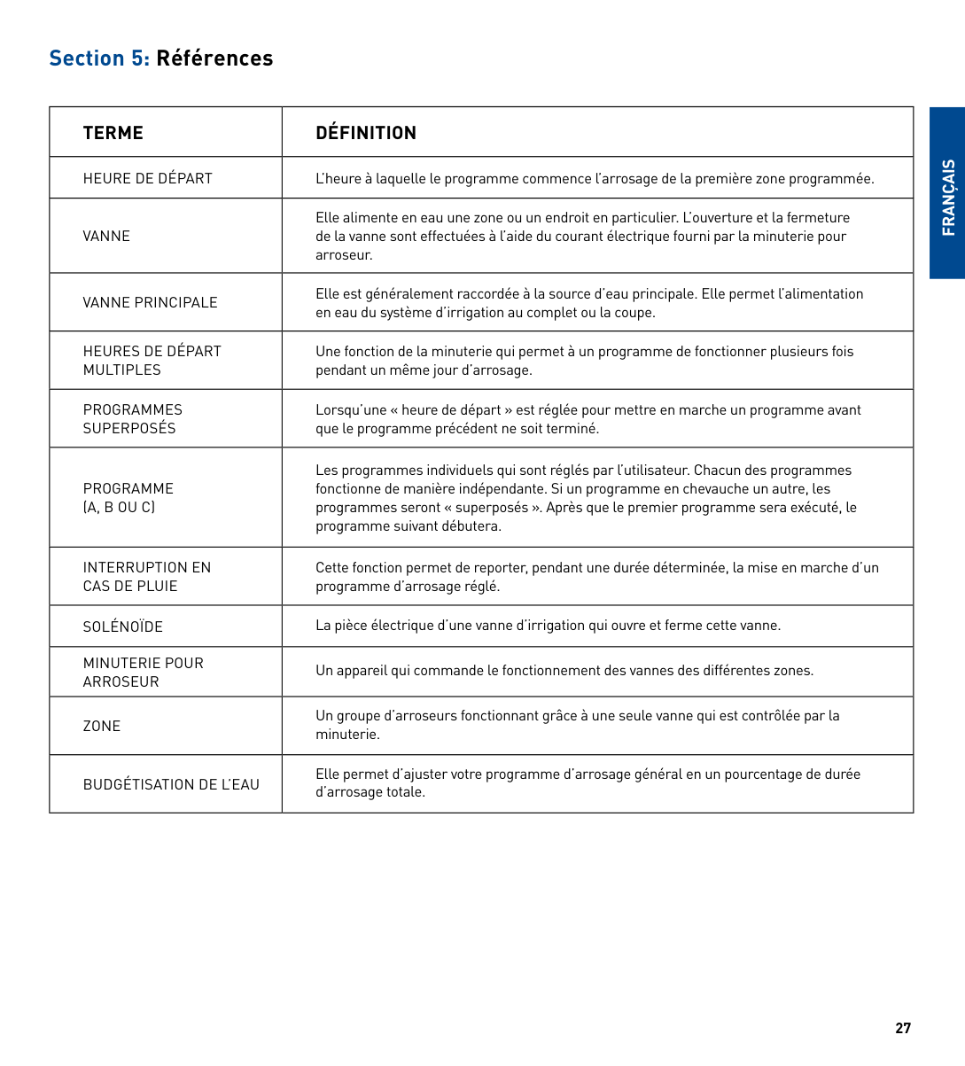 Elle permet d’ajuster votre programme d’arrosage général en un pourcentage de durée d’arrosage totale. Section 5: RéférencesFrançais