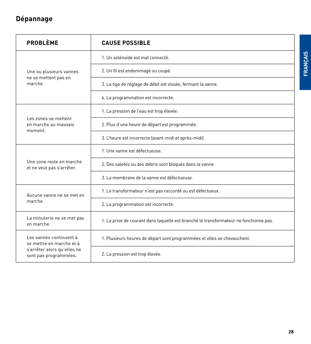 Une ou plusieurs vannes ne se mettent pas en marche.Français