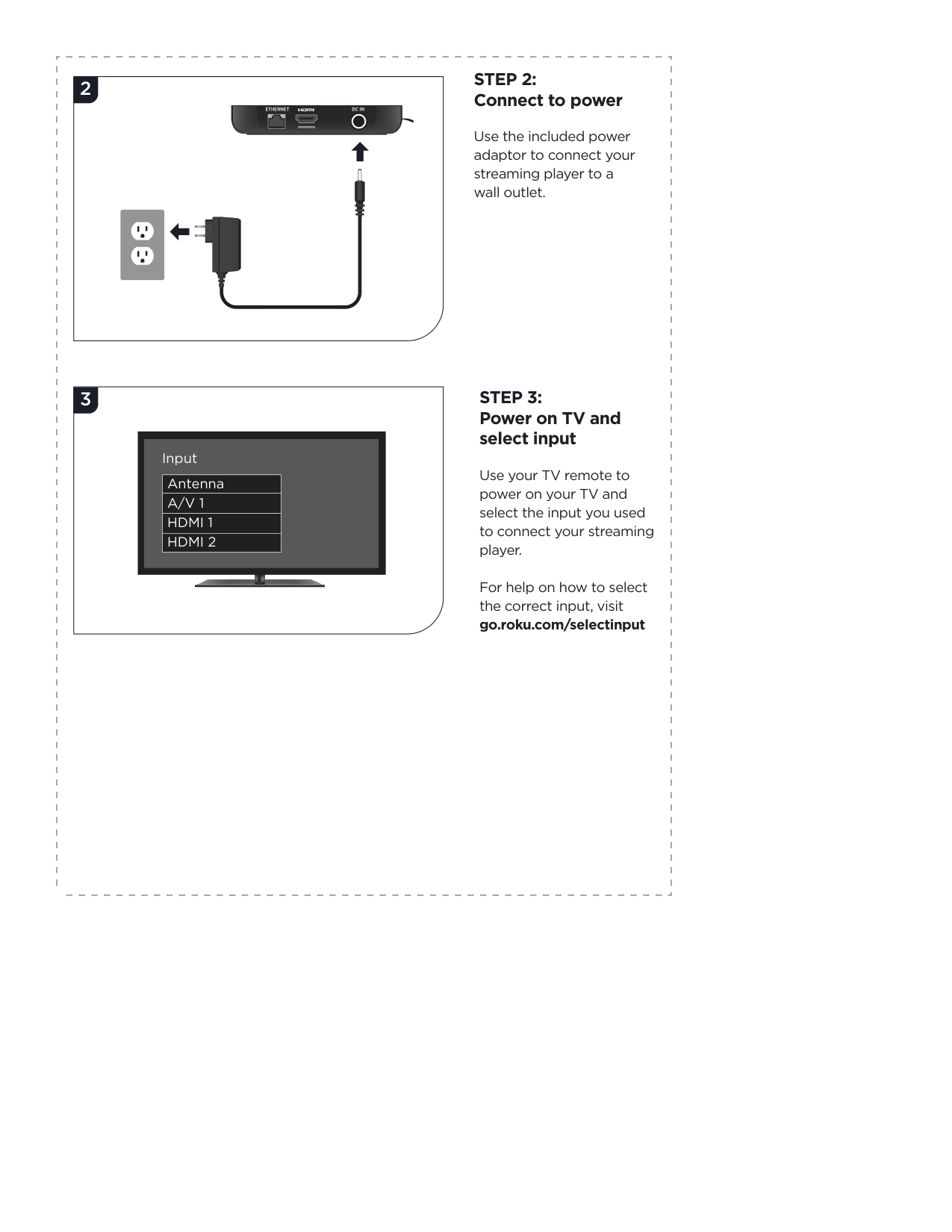 Connect to power Use the included power adaptor to connect your streaming player to a wall outlet.Step 3: