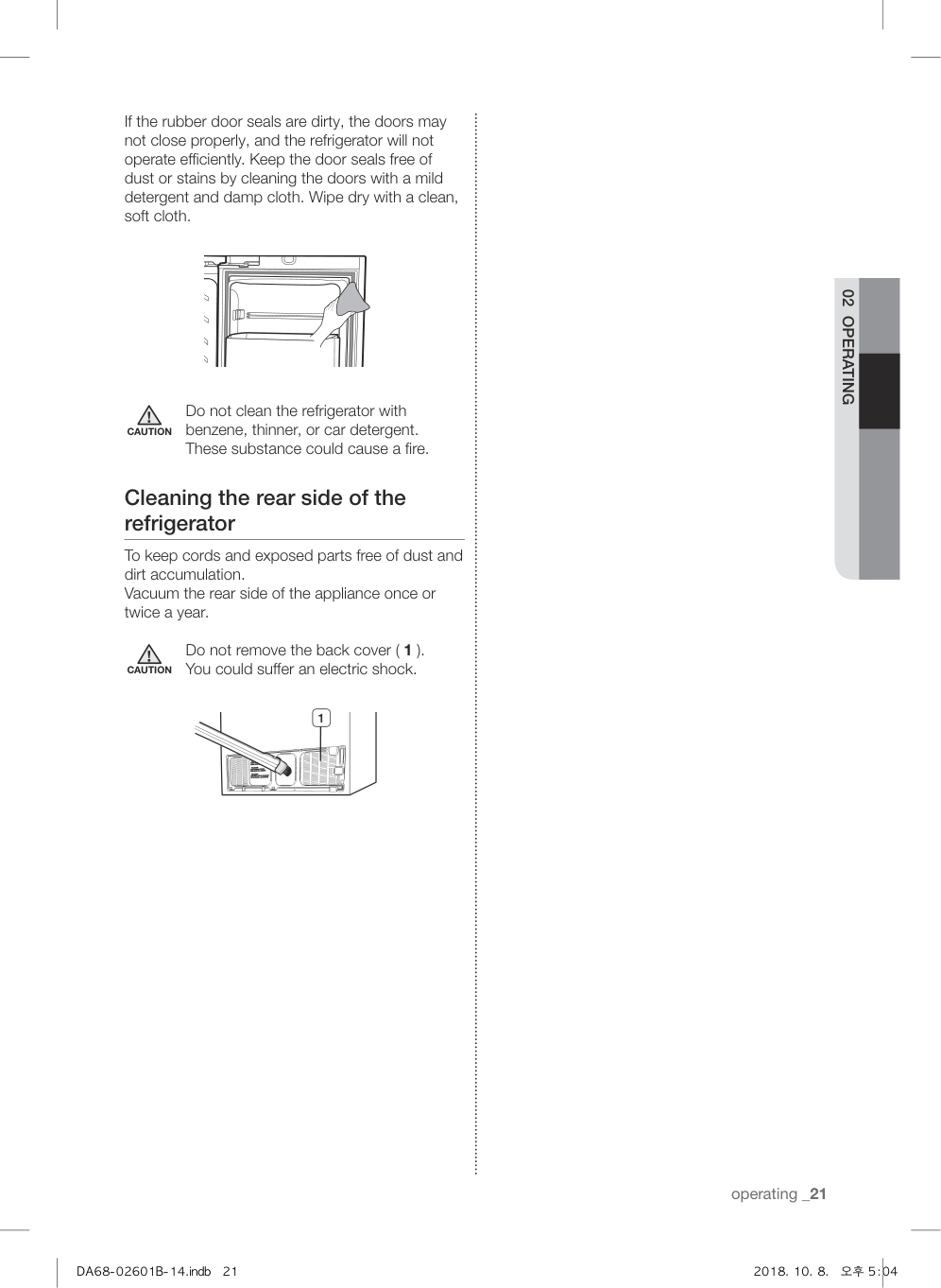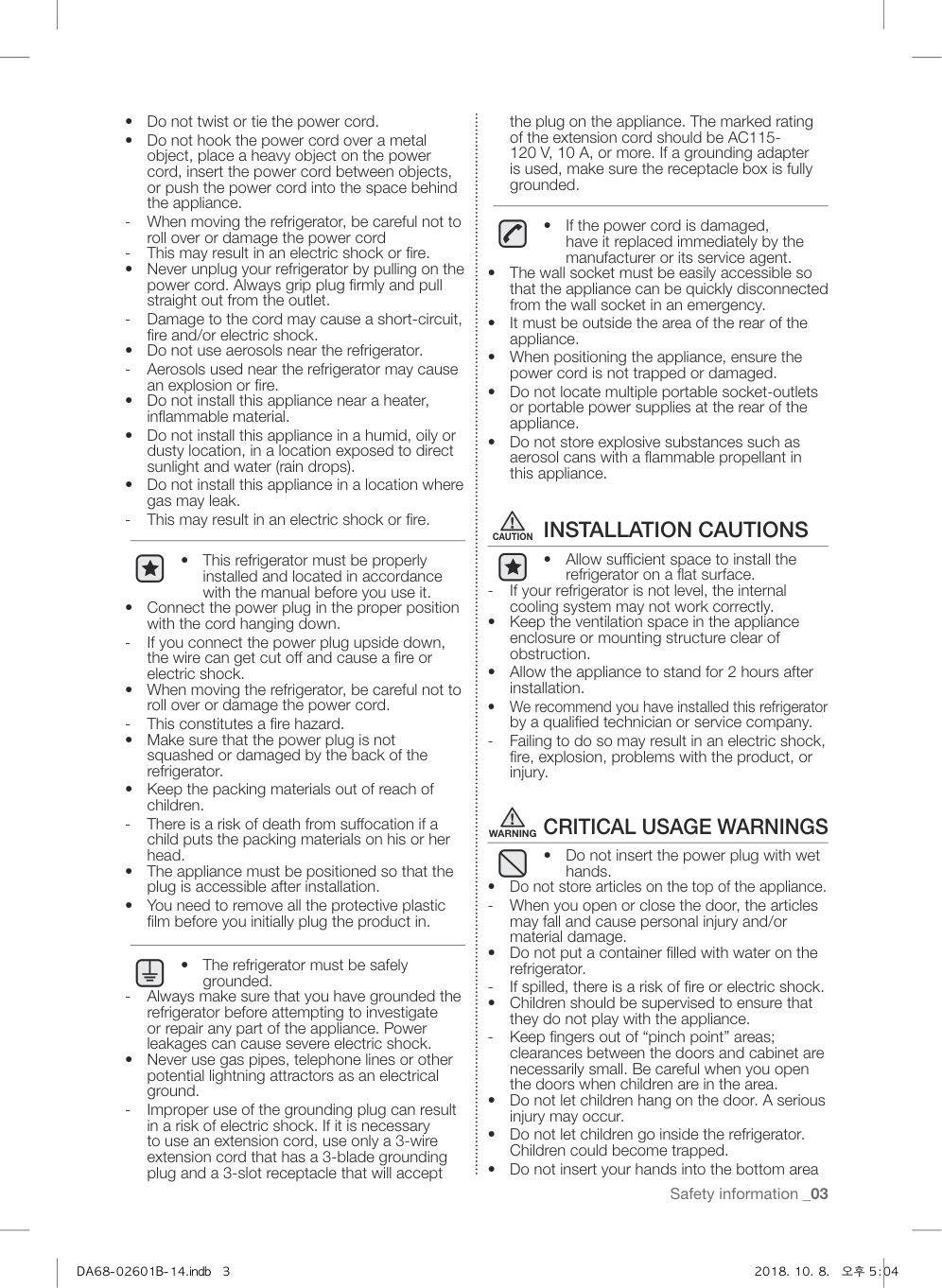Free Standing Appliance English Refrigerator user manual Thank you for purchasing this Samsung product. DA68-02601B-14.indb 102_ Safety information safety information