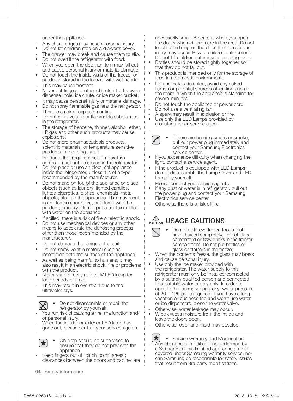 DA68-02601B-14.indb 304_ Safety information under the appliance. -- Any sharp edges may cause personal injury.