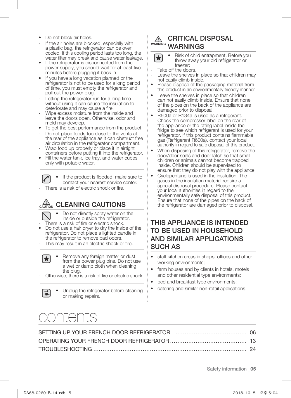 contentsSetting Up Your French Door Refrigerator… ………………………………… 06