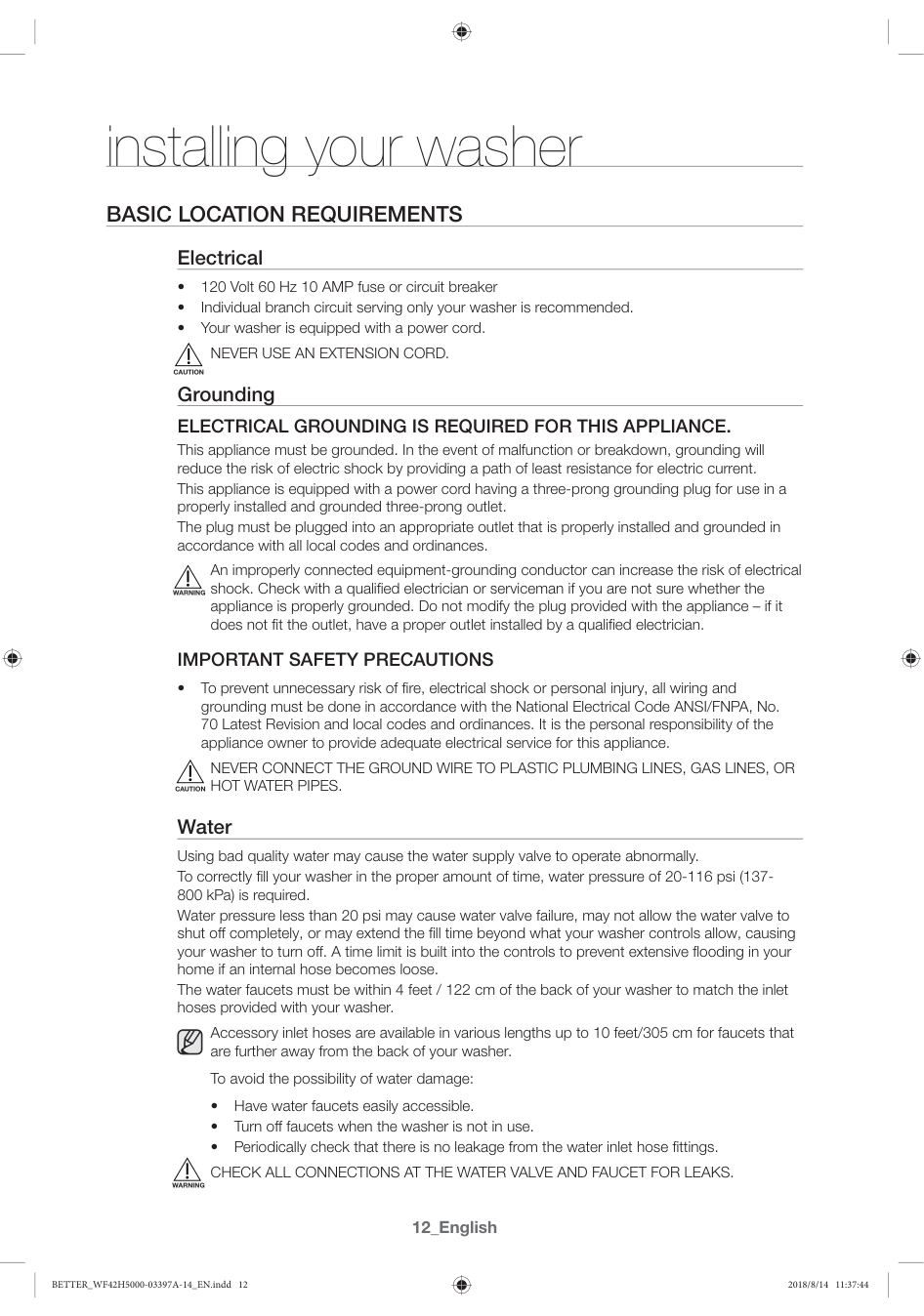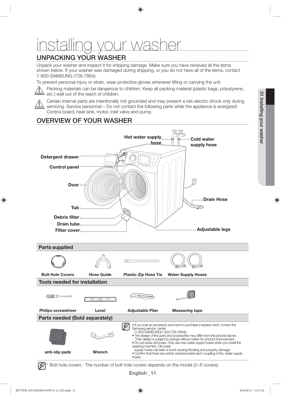 01 Installing your washer BETTER_WF42H5000-03397A-14_EN.indd 11 2018/8/14 11:37:4312_English