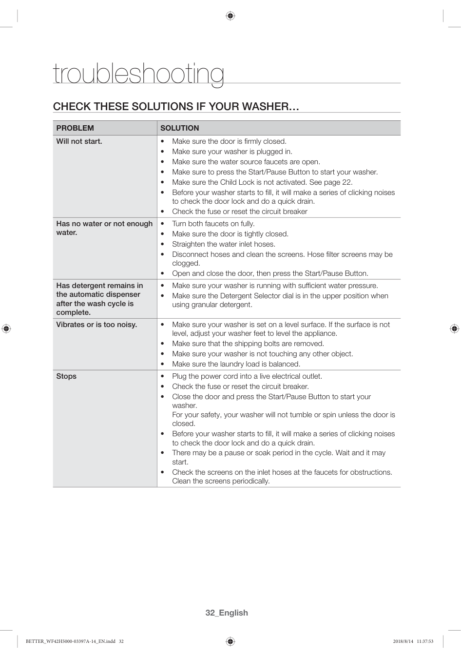 32 32 Check these solutions if your washer… 34 Information codesAppendix